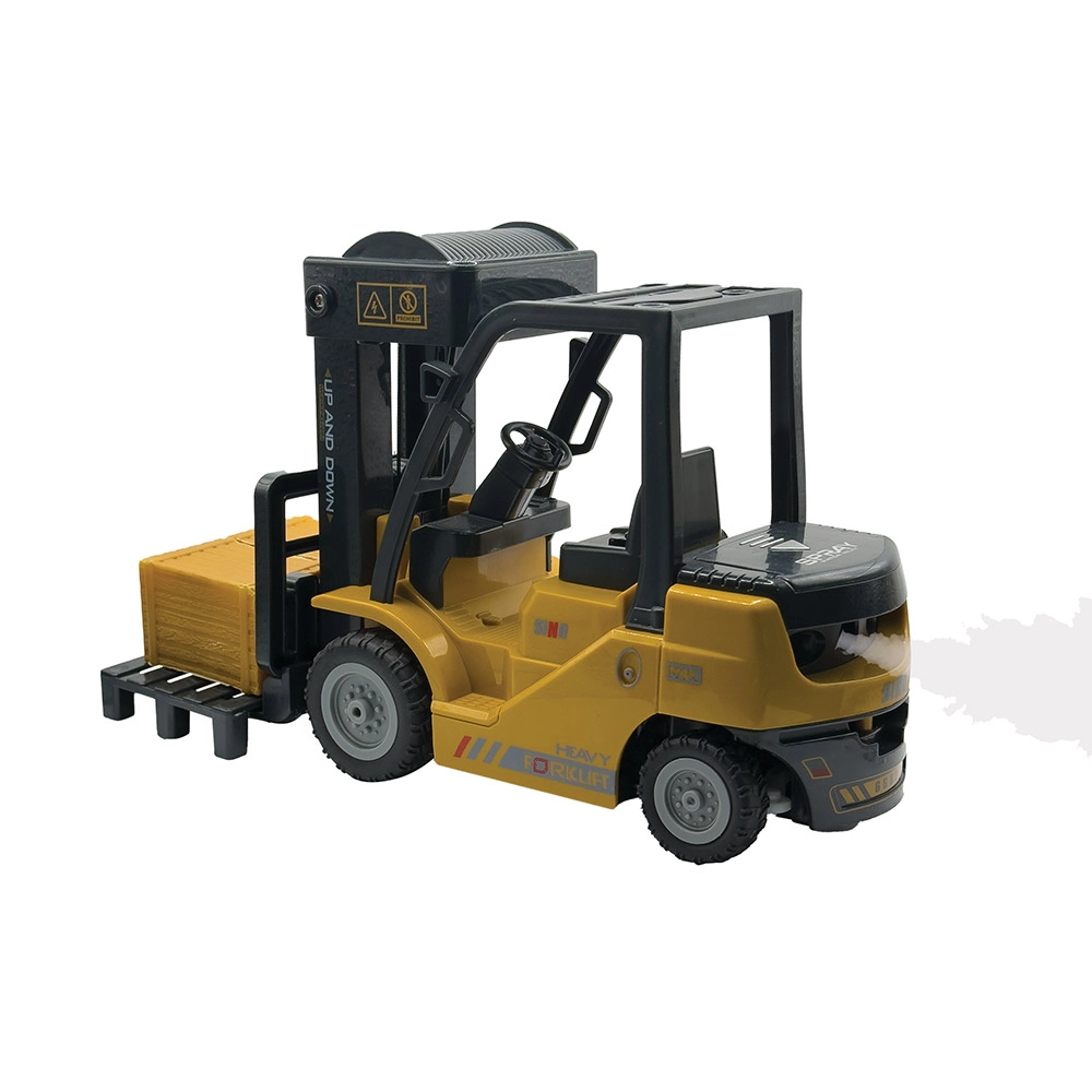 - Realistic remote control: Easy-to-use handset brings the forklift to life with forward, backward, left, right, and lift/tip functions.