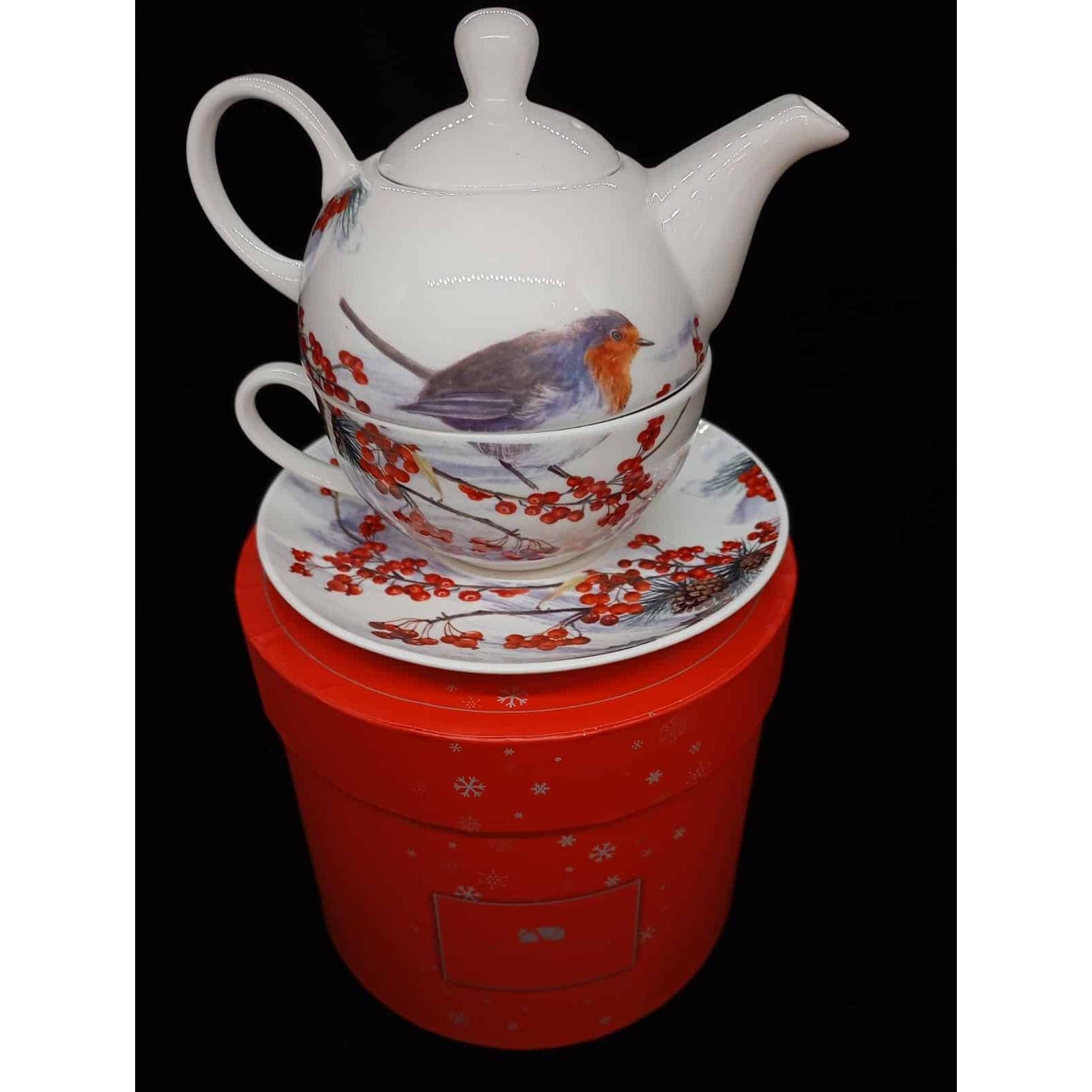 This delightful and graceful set features a charming robin motif and is presented in a lovely red hat box, making it an ideal present for both tea lovers and cherished individuals.