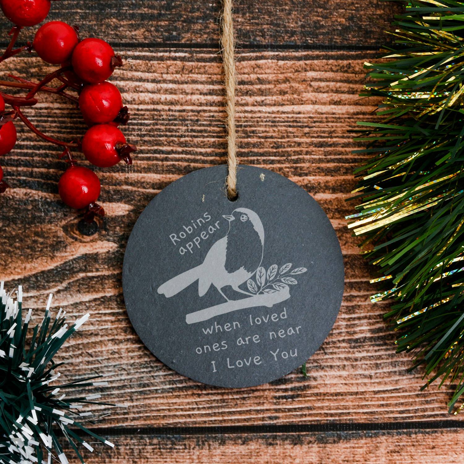Robins Appear When Loved Ones Are Near - Personalised Round Slate Hanging Decoration