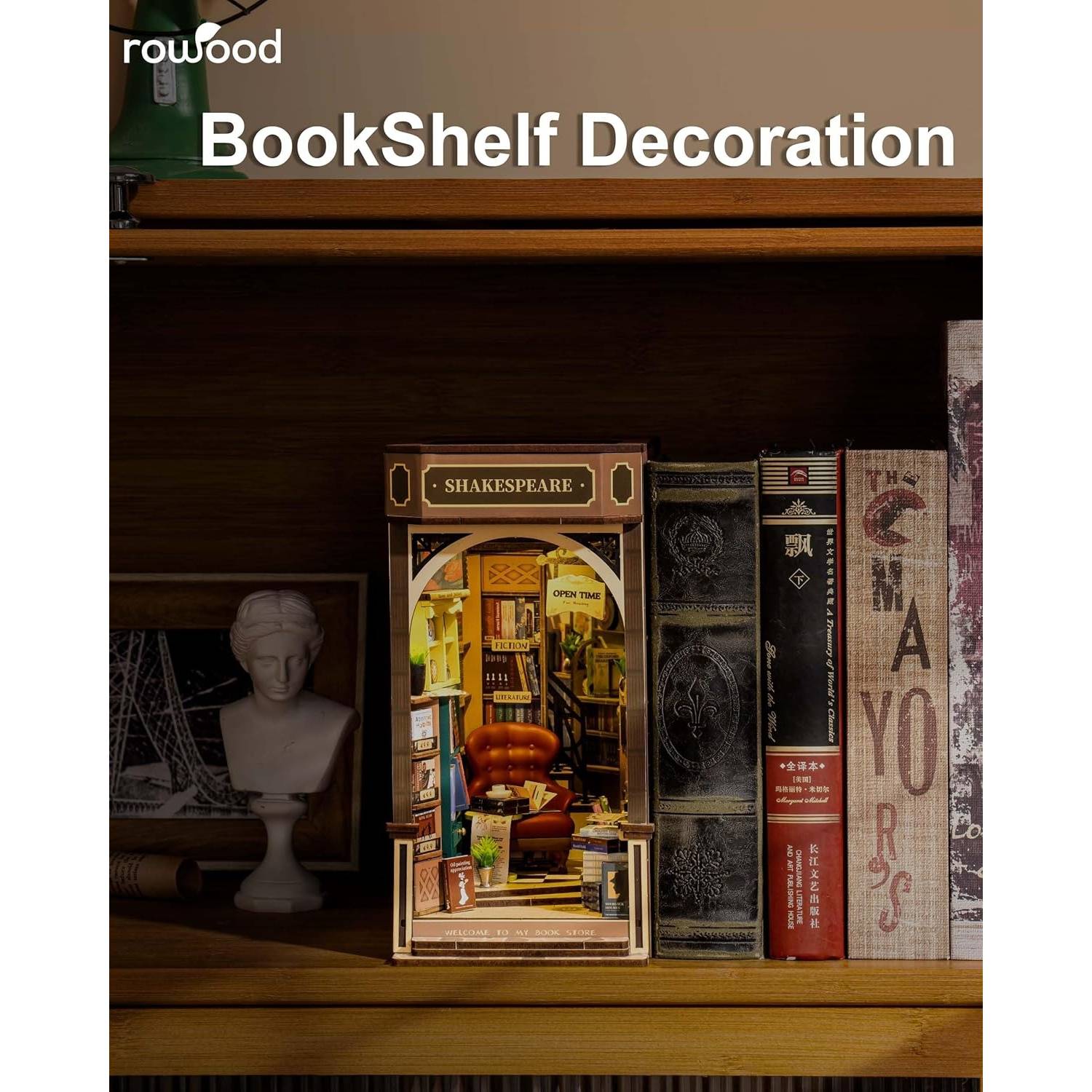 The Rolife Book Nook - Bookstore is more than just a model; it’s a charming miniature world that encourages imagination and mindfulness. It’s perfect for spending quality time with loved ones while building, making it a wonderful bonding activity. Once completed, it serves as a stunning decorative piece and a conversation starter, bringing warmth and personality to any shelf or desk.