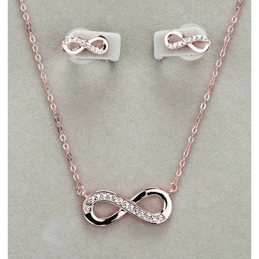 Rose gold infinity necklace & earrings set, presented in a beautiful gift box and jewellery bag.