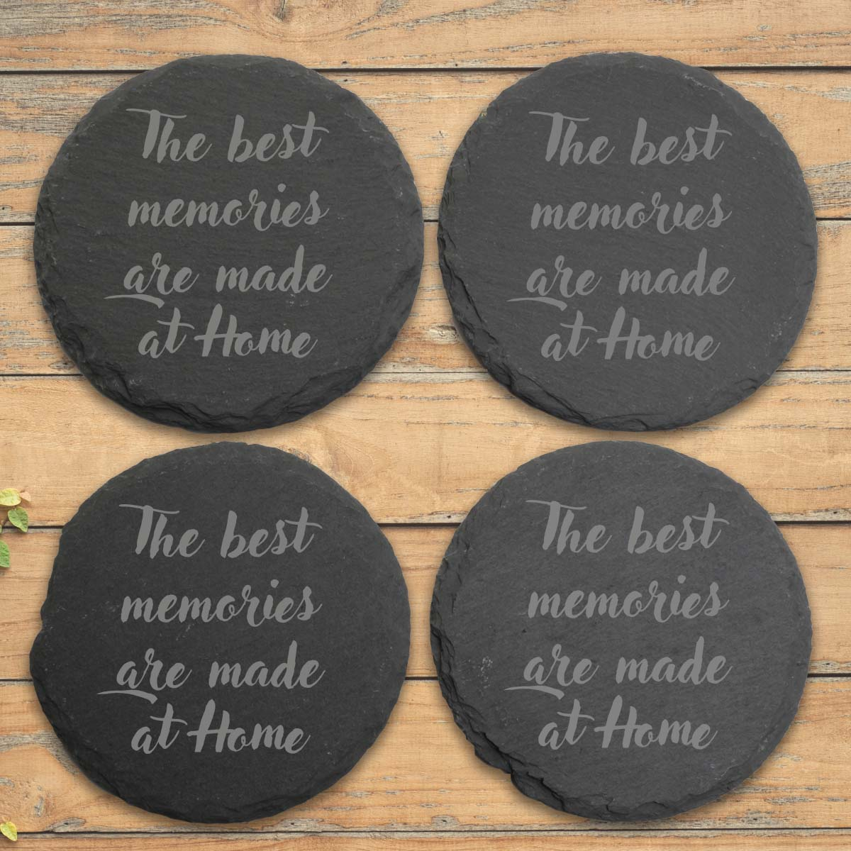 Each coaster is made from natural slate are a contemporary fit for any home.