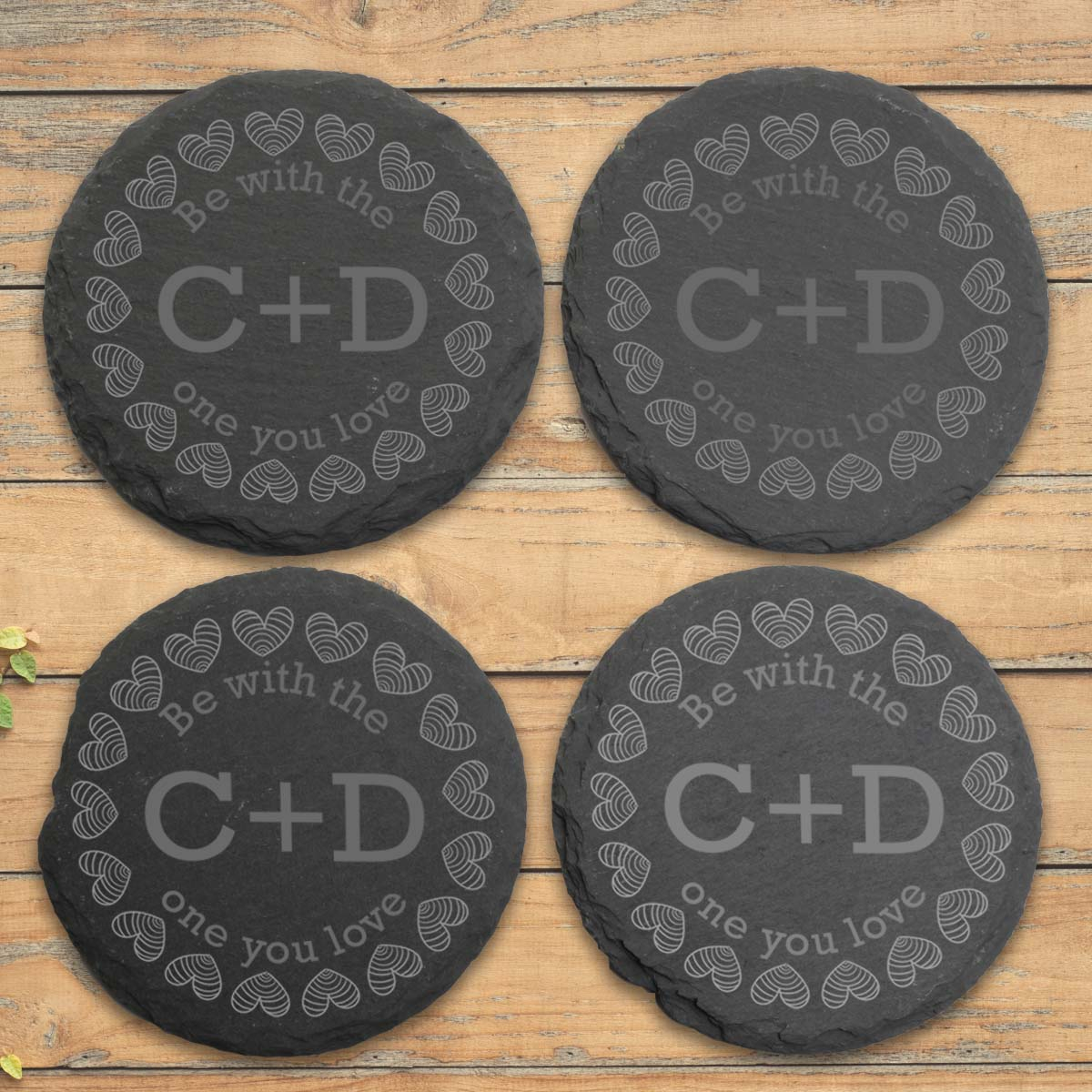 Comes in a set of four coasters. All 4 coasters are engraved.