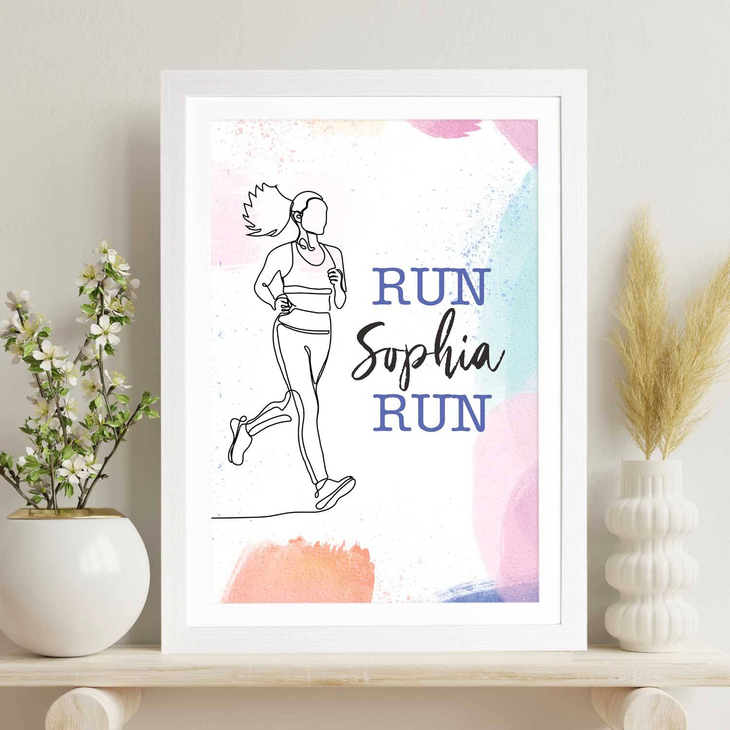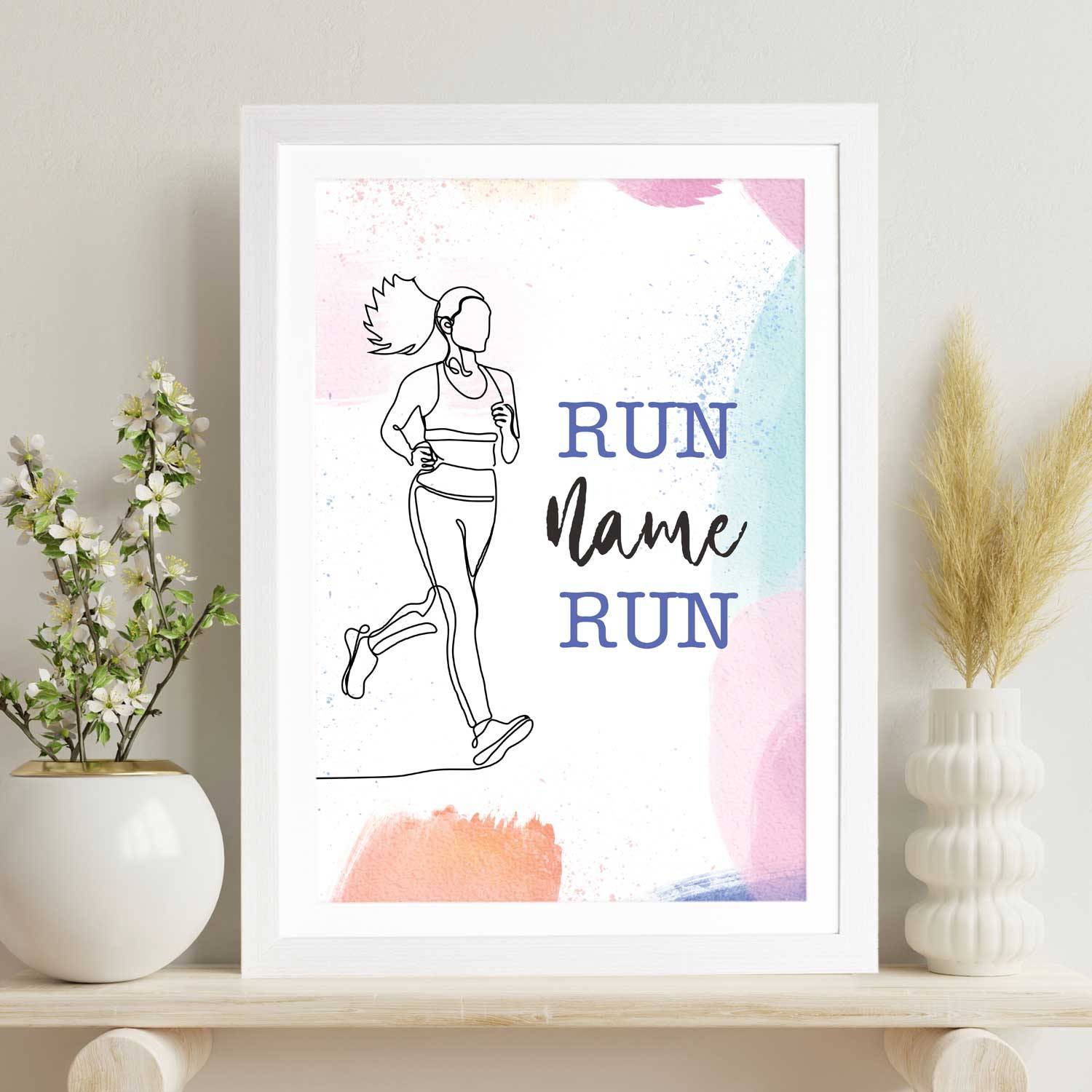 Run Any Name Run, Woman Silhouette - Personalised Poster