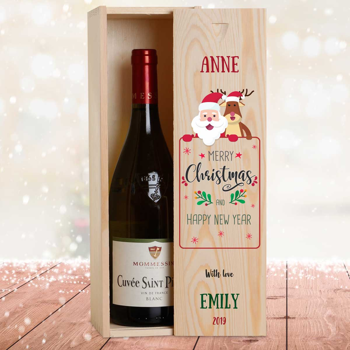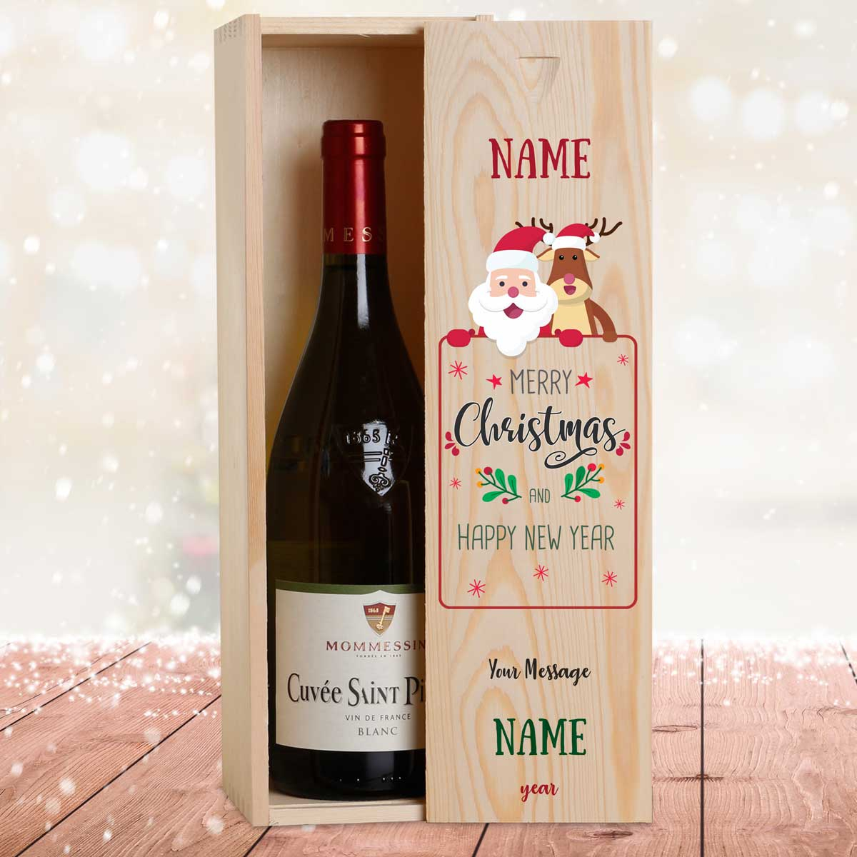 Santa And Rudolph Christmas Personalised Wooden Single Wine Box