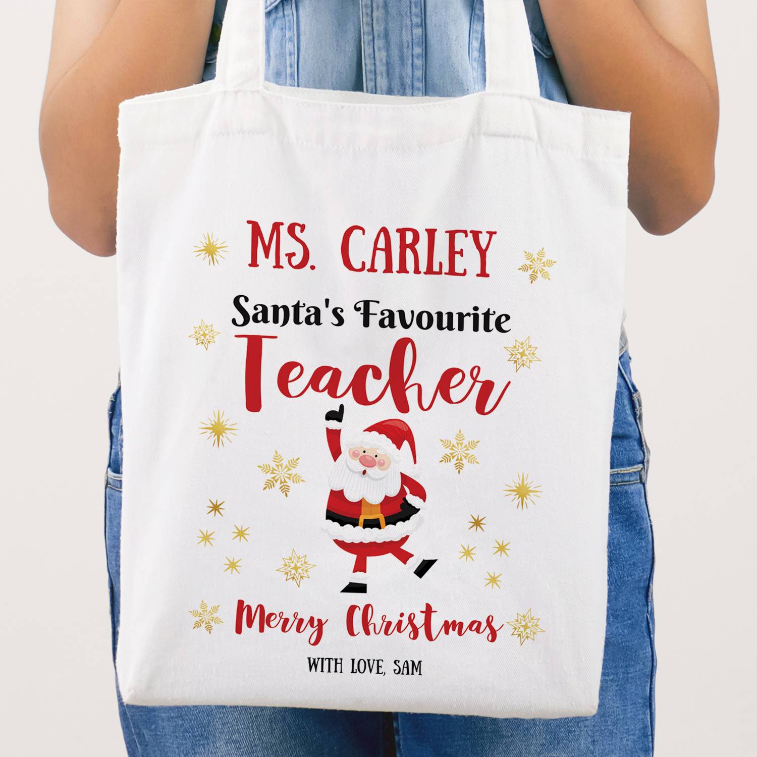 Here's a great gift for your teacher, a personalised Santa's Favourite Teacher shopping bag!
