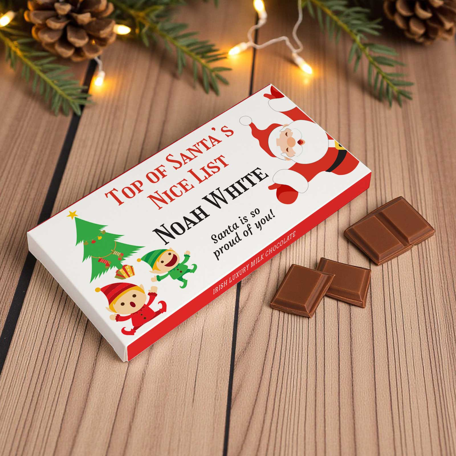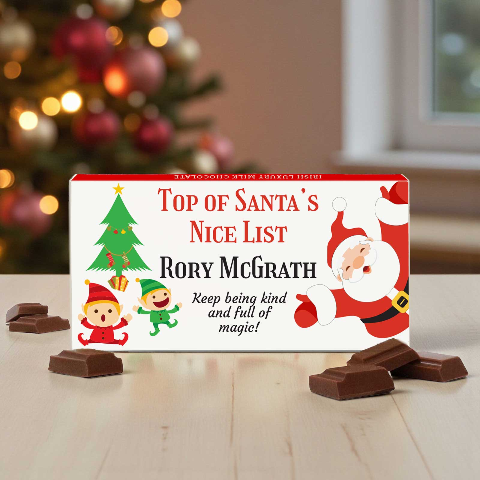 If they're one of the good kids, they’ll receive a delicious 90g milk chocolate bar, beautifully wrapped with their name and a personalised message from Mr & Mrs Claus and the Elves. It’s a special way to reward kind hearts and spread festive cheer!