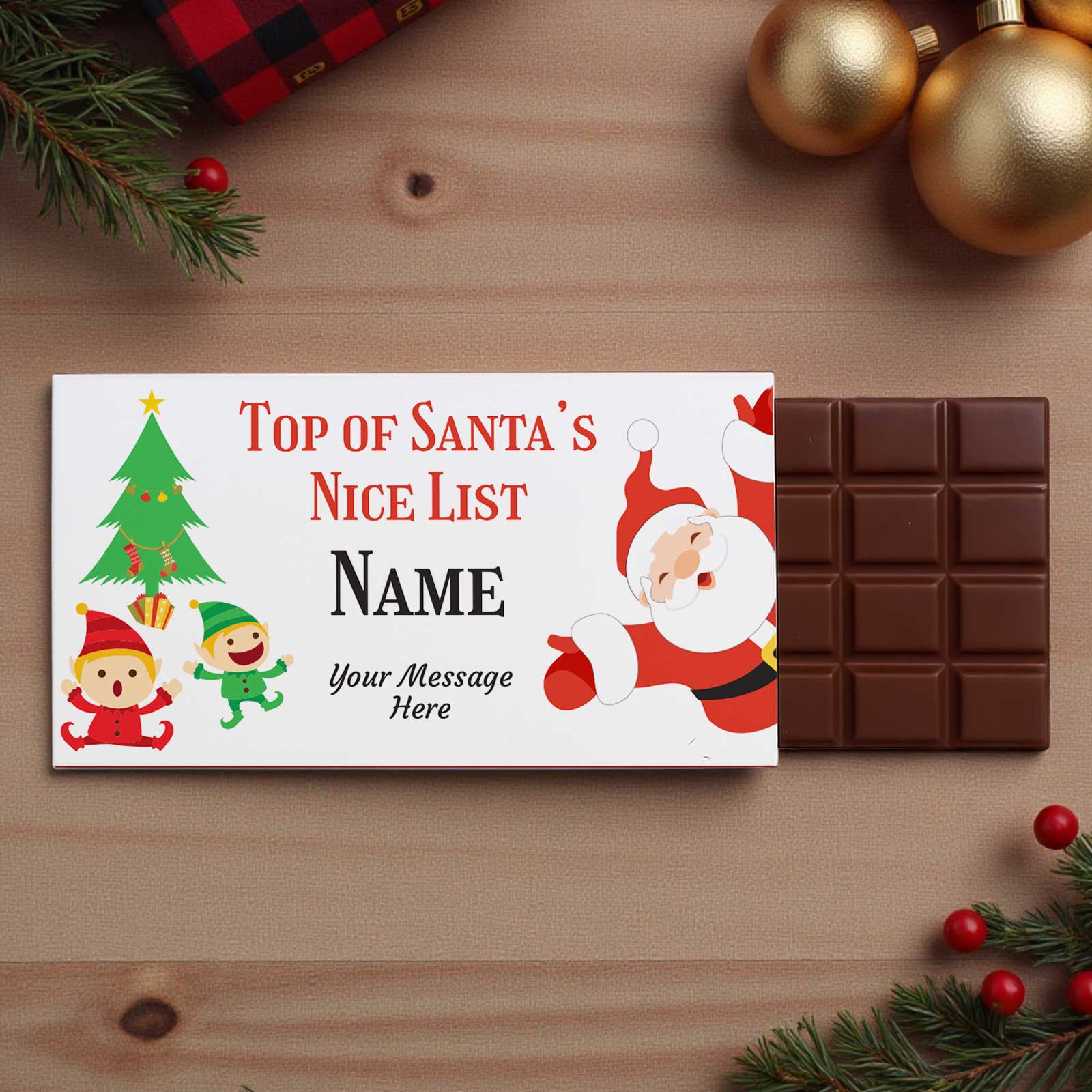 Delight your little ones this Christmas with the Santa's Nice List Personalised Chocolate Bar 90g – a magical gift straight from the North Pole! Simply provide your child's name, and we'll check whether they’ve made it onto Santa’s exclusive Nice List.