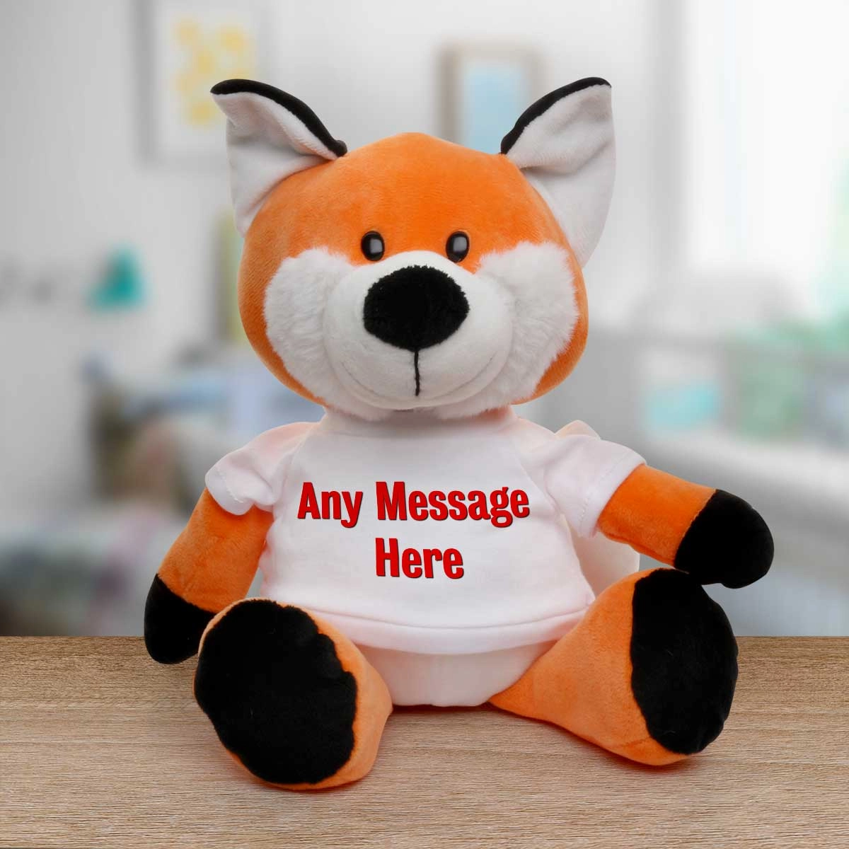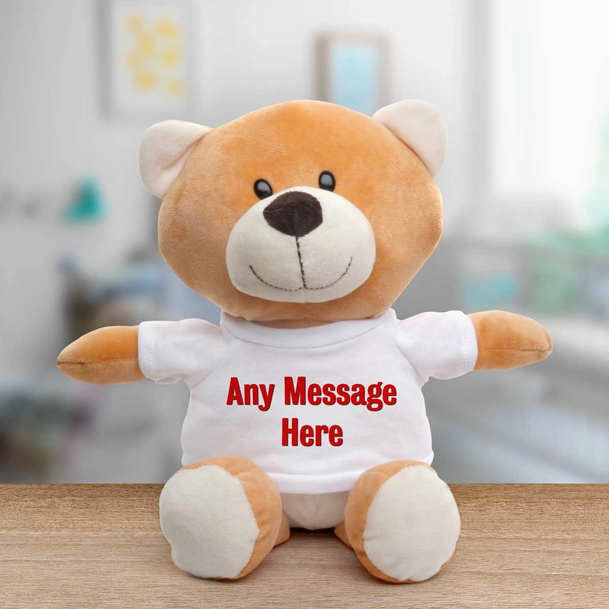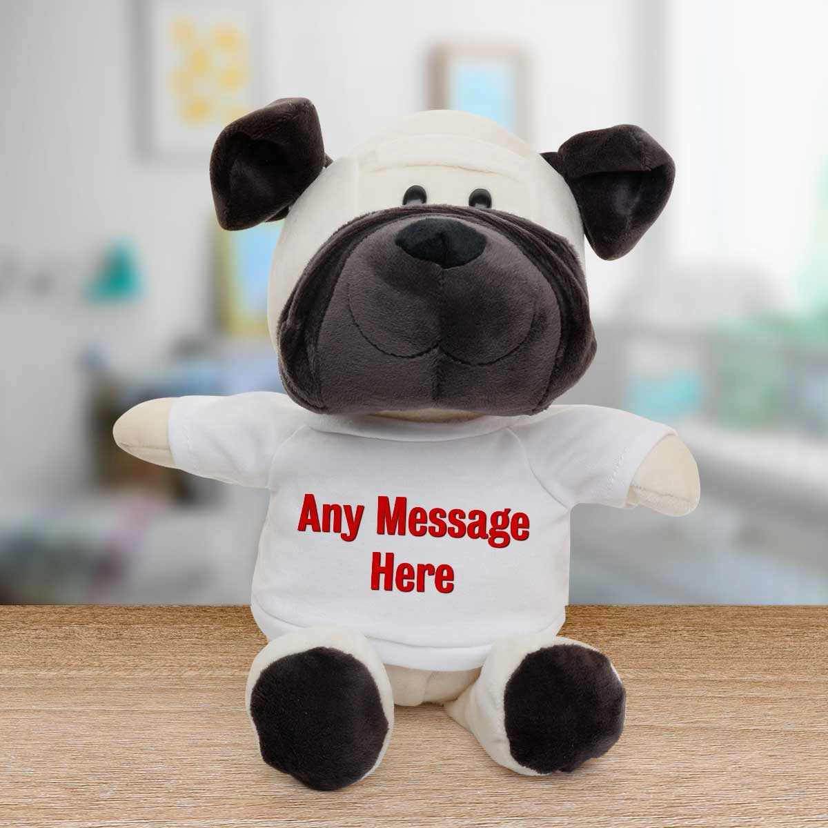 The animal's t-shirt is personalised to include your special message.