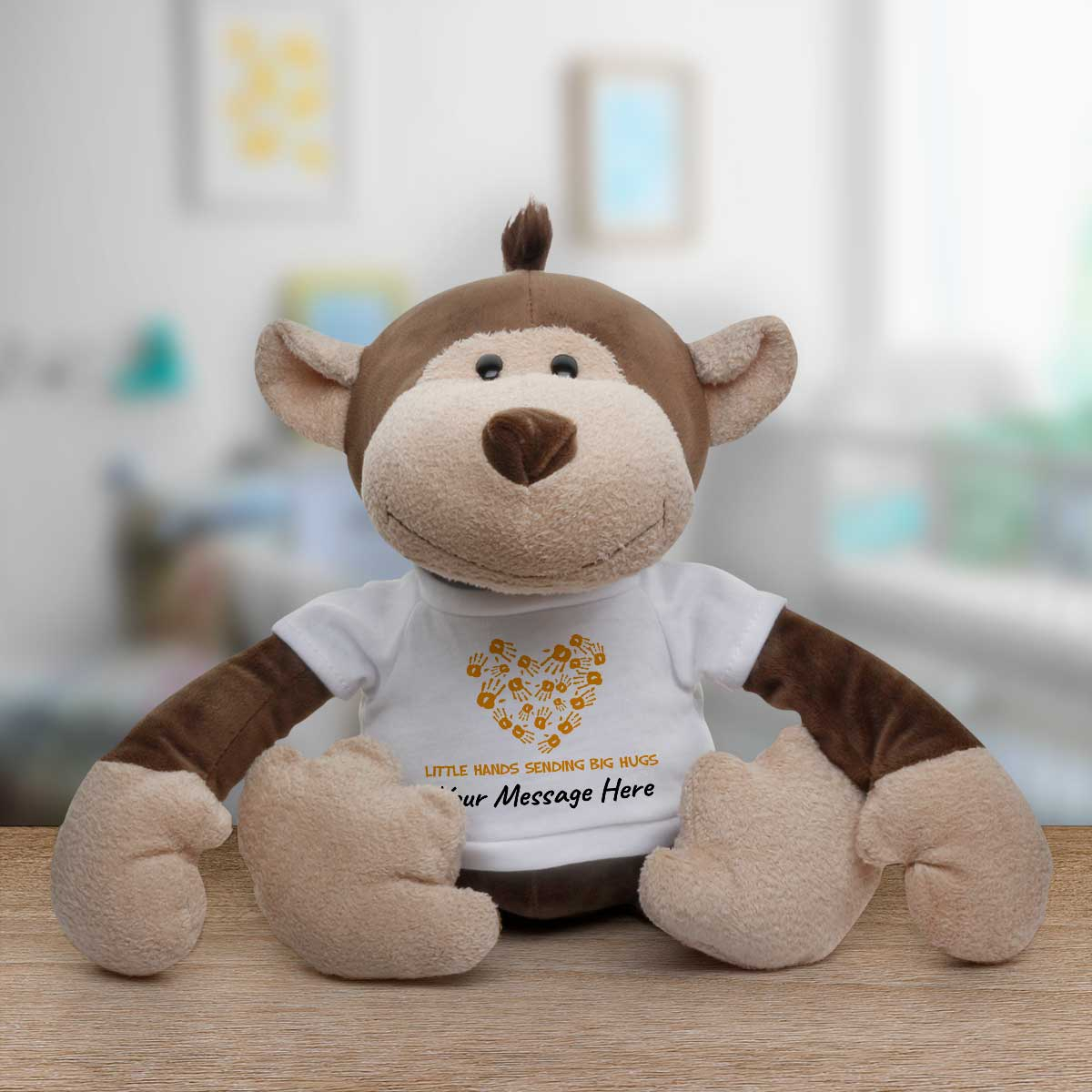 The animal's t-shirt is personalised to include your special message.