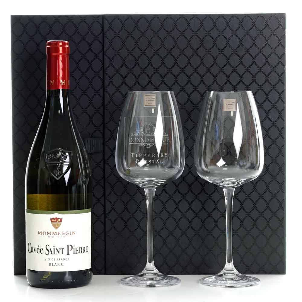 Set of 2 White Wine Glasses with Wine in Gift Box from Tipperary Crystal