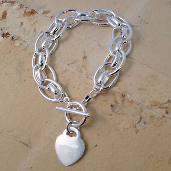 This simple but yet elegant design will work with any outfit you wear. Its bold silver plated ink design gives it a contemporary feel, complimented perfectly by the silver plated heart which features a secure toggle closure.
