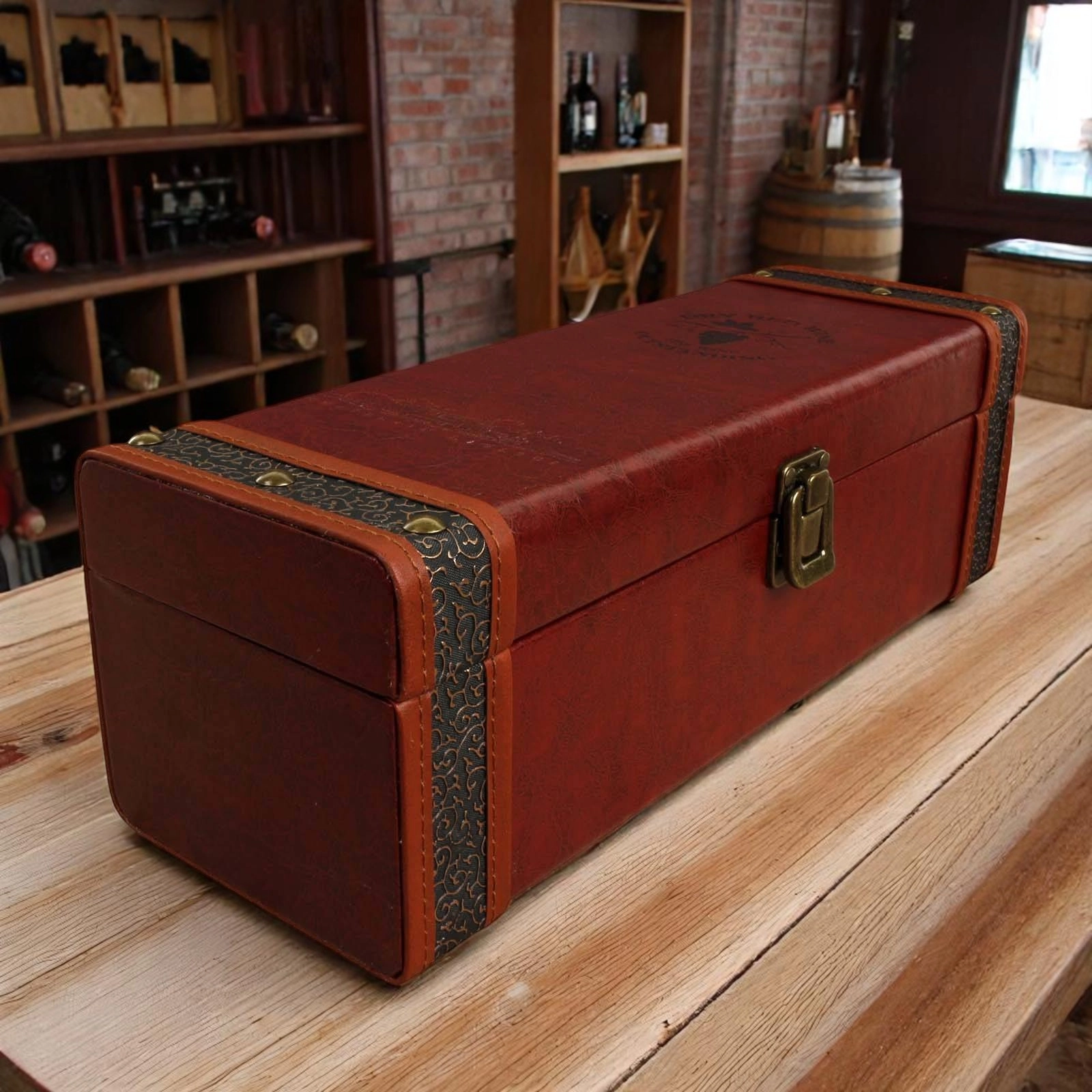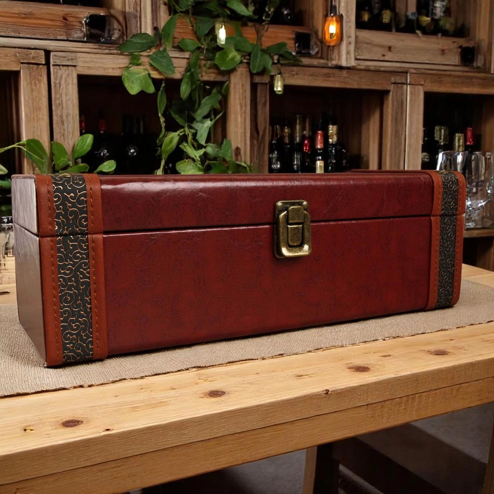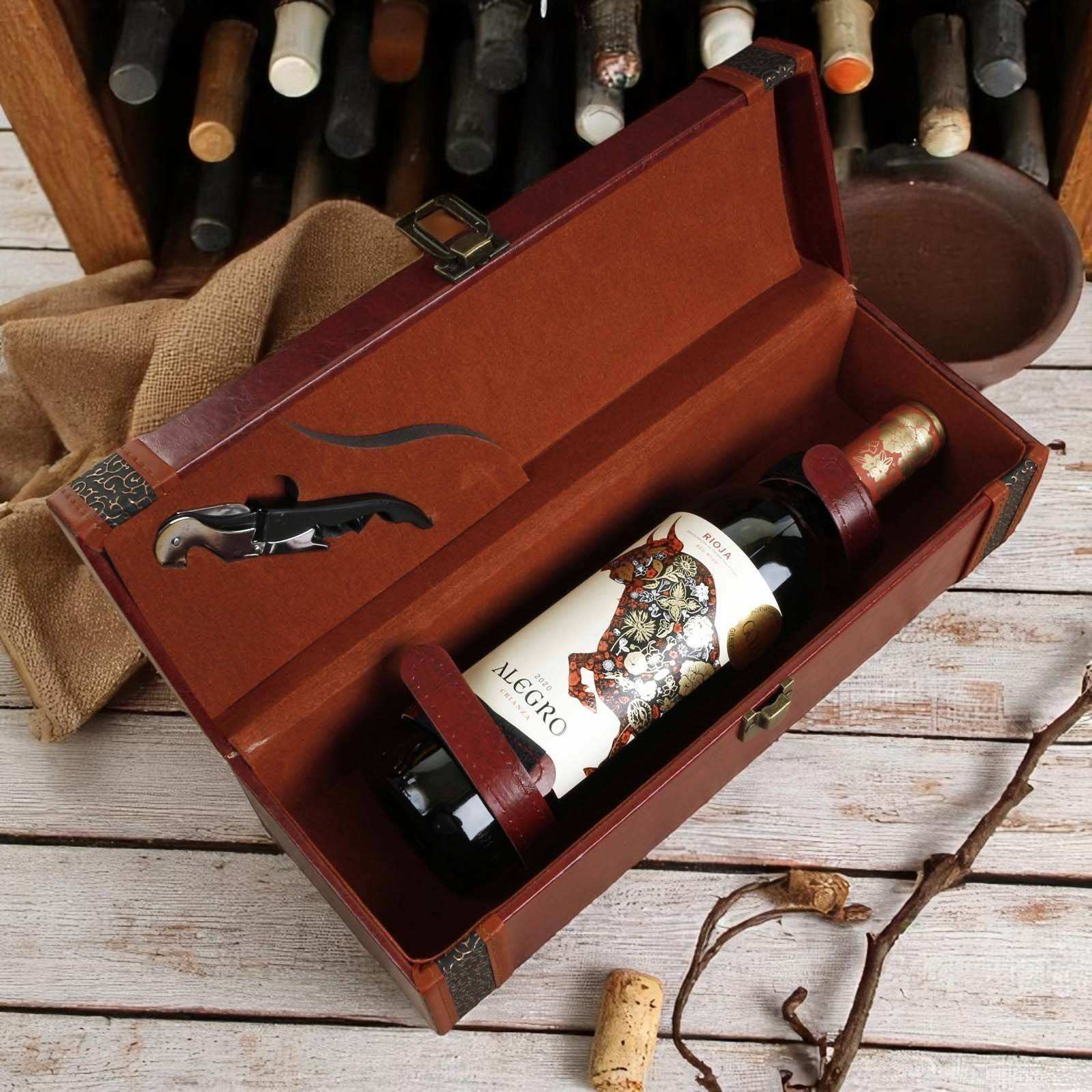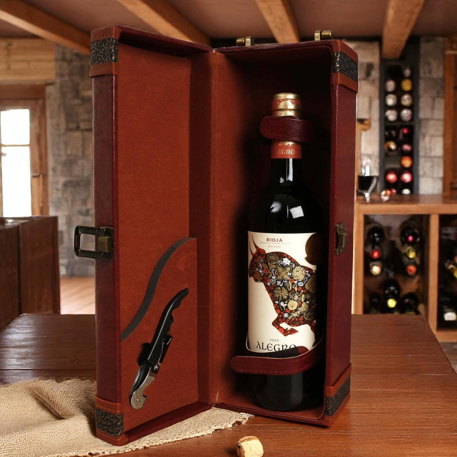 The hamper is presented in a luxury leatherette presentation case with bottle opener as illustrated. This is packed inside a separate shipping box for secure transport.