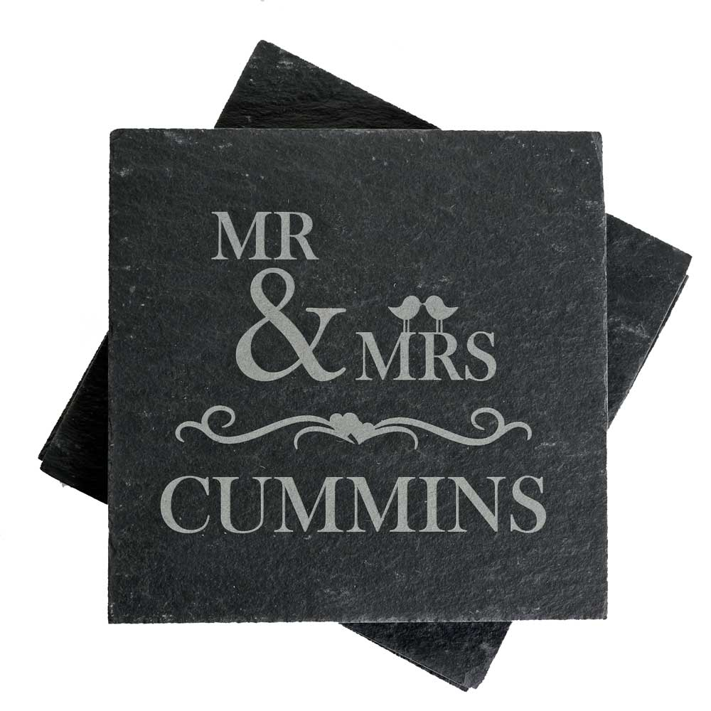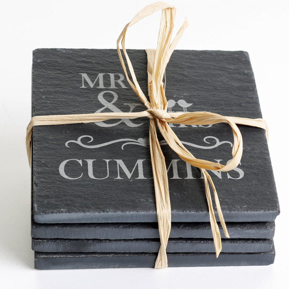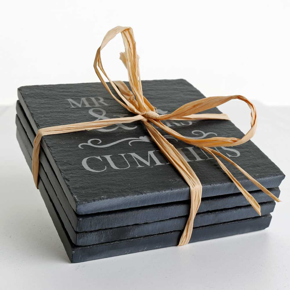 Each coaster is made from natural slate and is engraved with the recipent's family name.