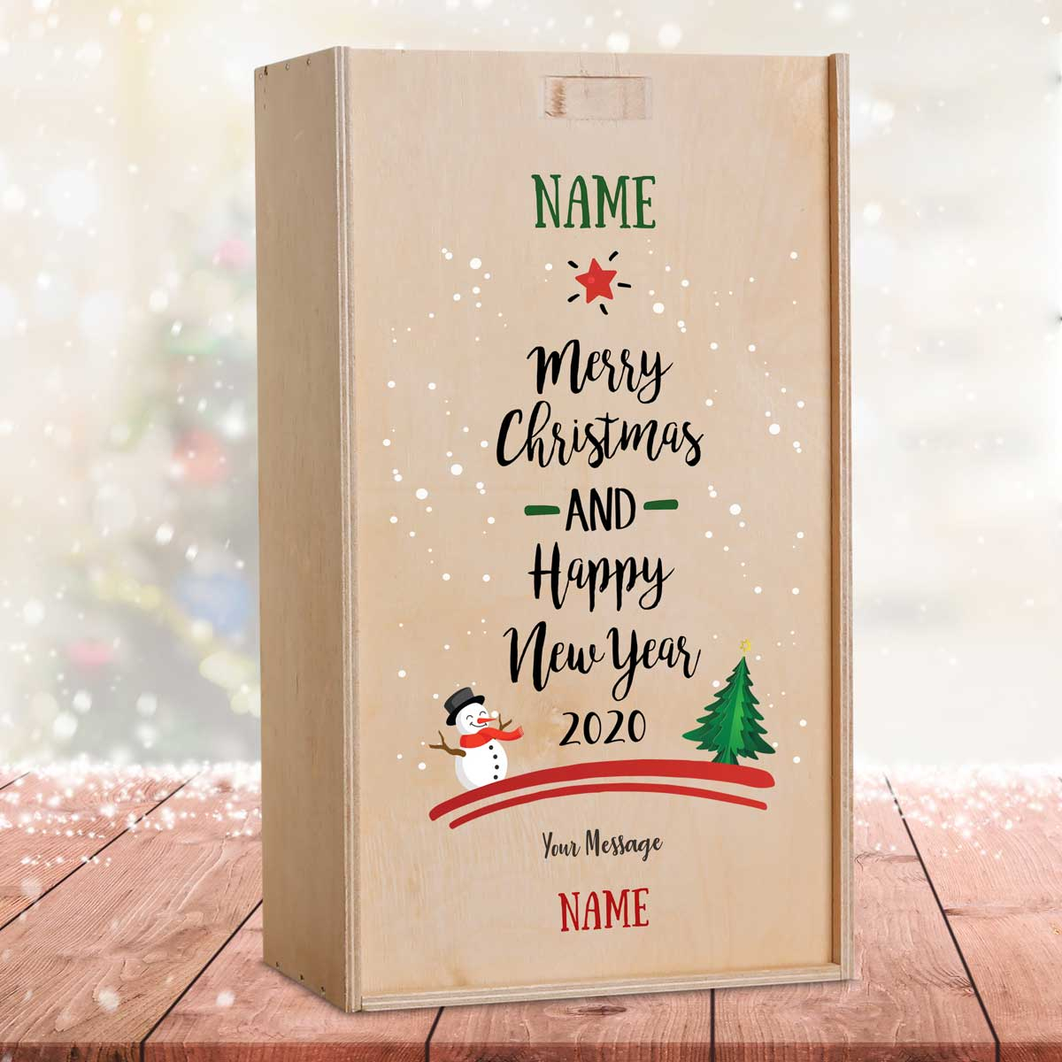 This personalised wine box with two bottles of wine makes the perfect Christmas gift.