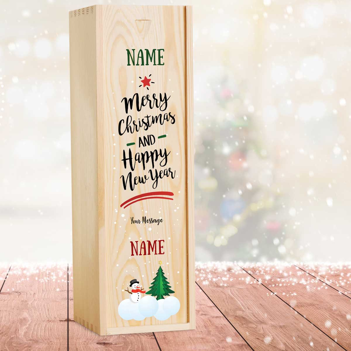 Snowman Christmas Personalised Wooden Single Wine Box
