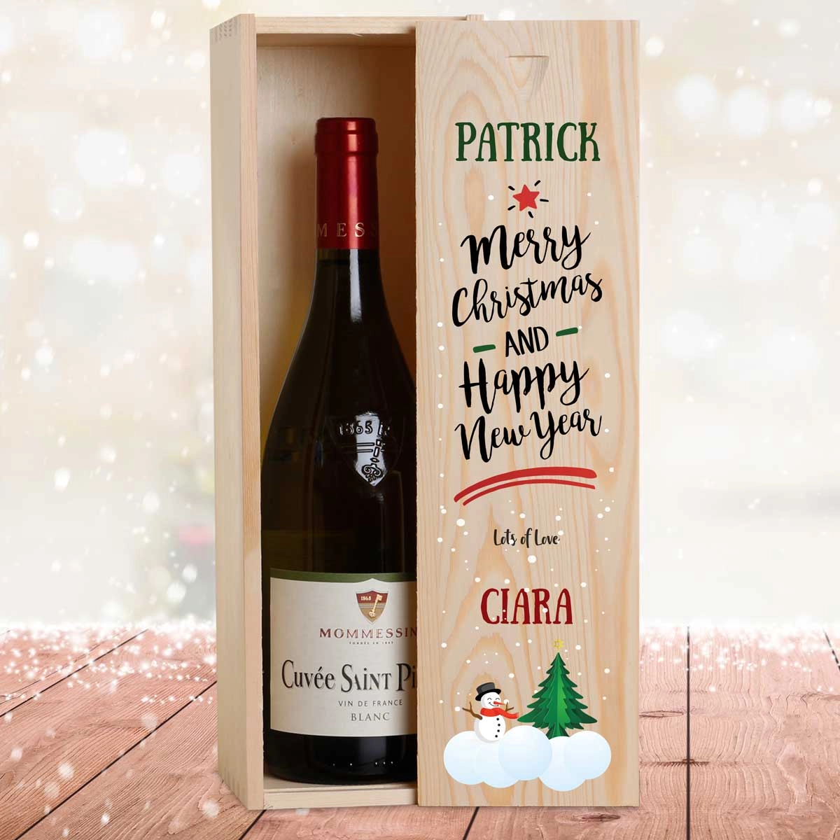 This personalised wine box with a bottle of wine makes the perfect Christmas gift.