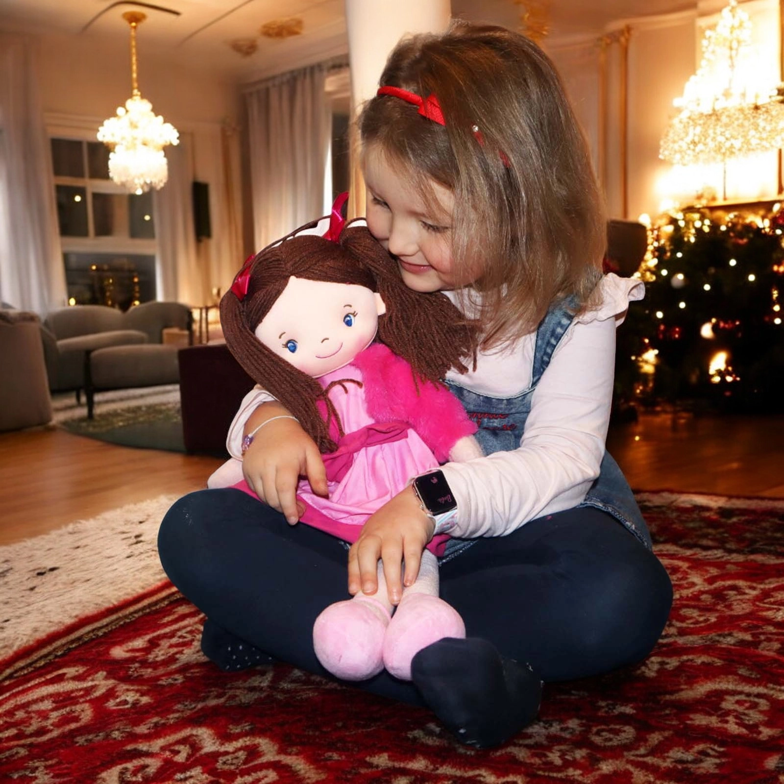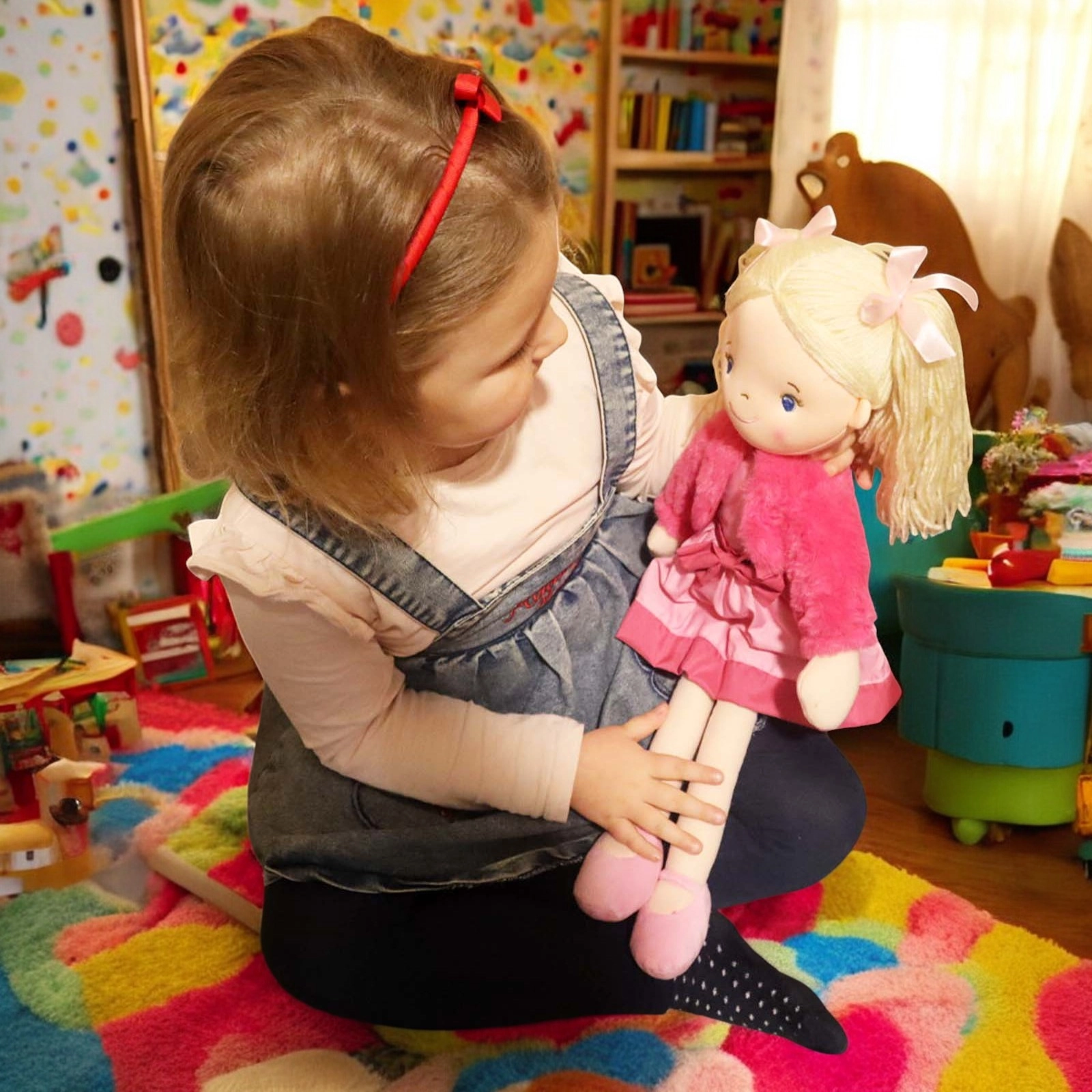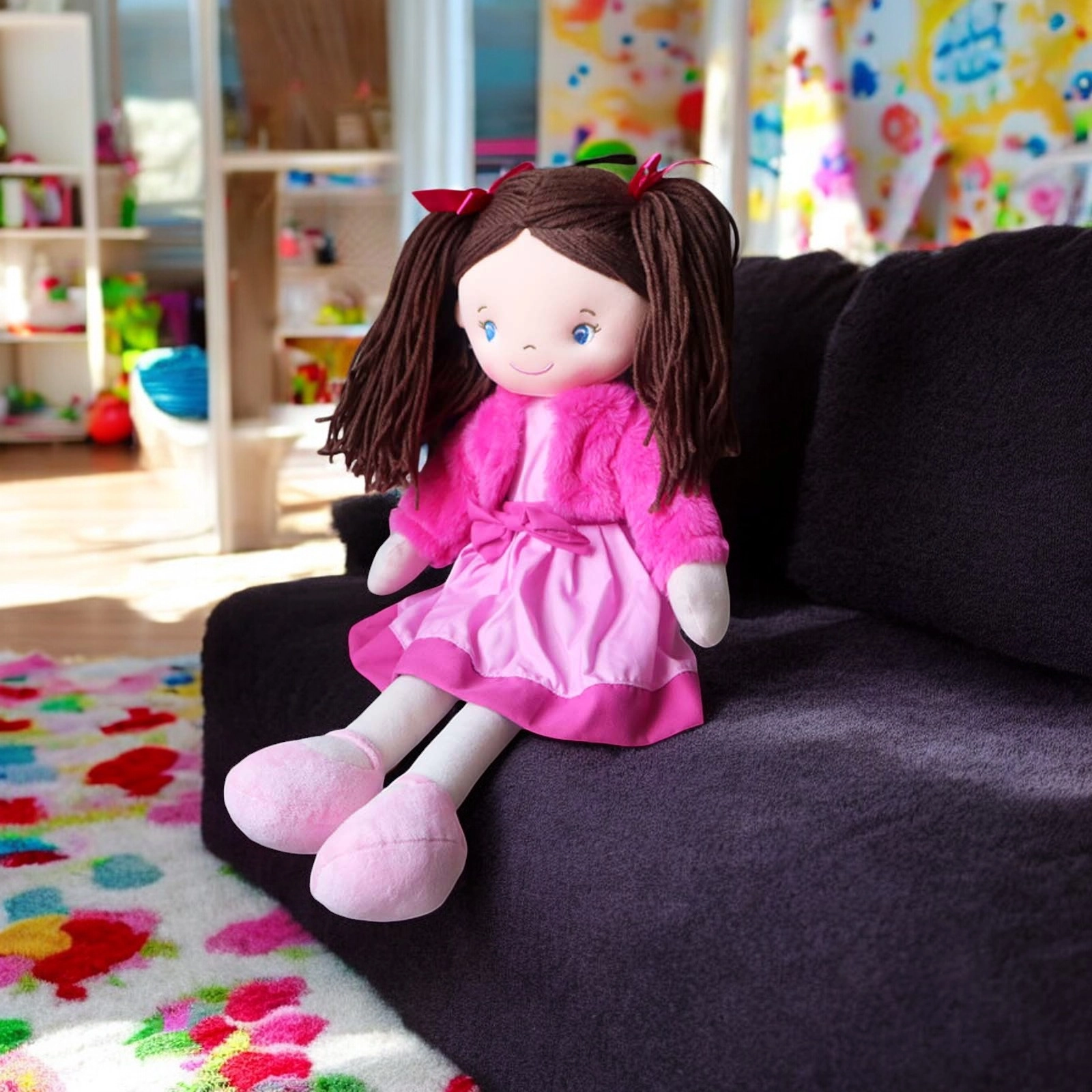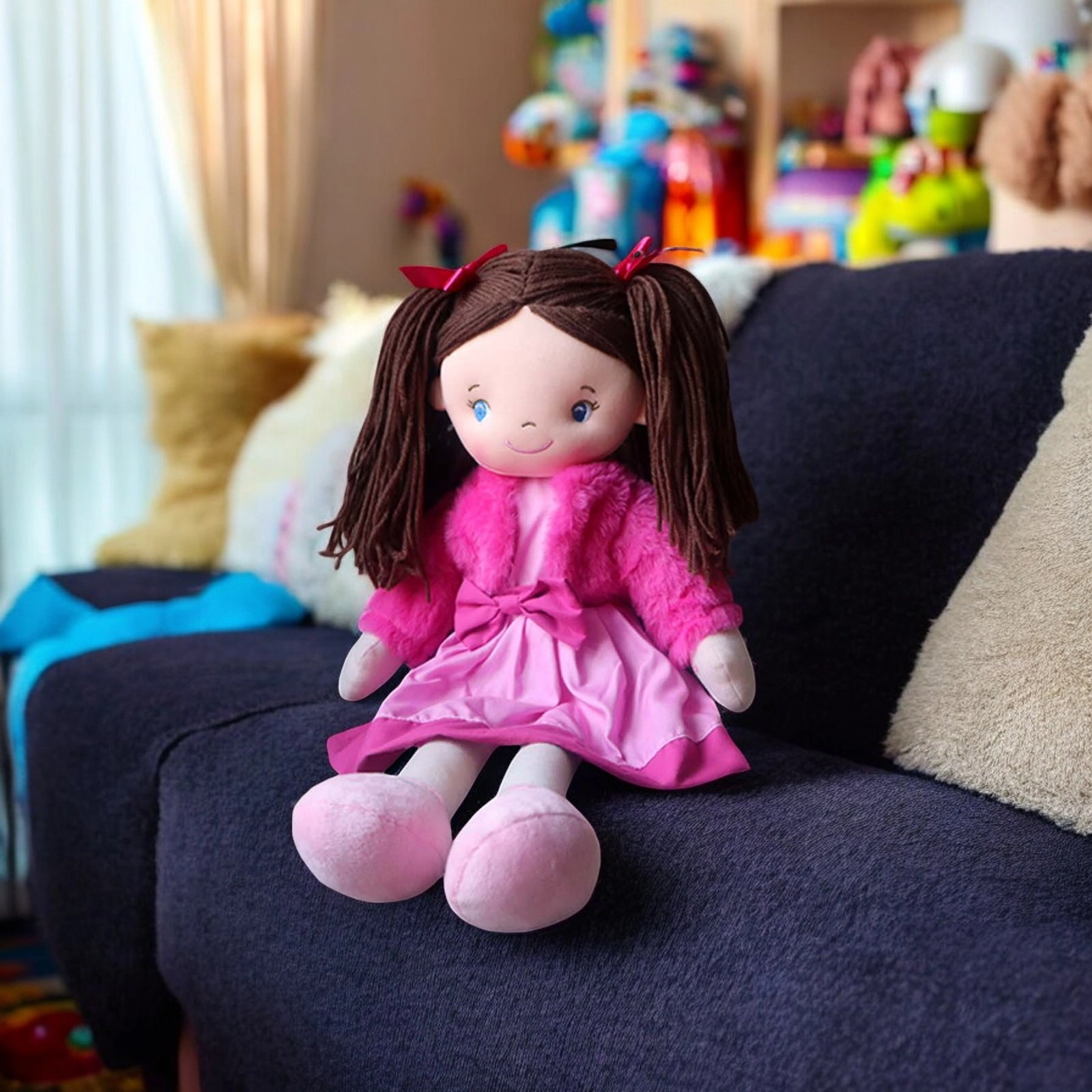 She comes in a Pink dress with a Velcro opening at the back, the jacket can also be easily removed.
