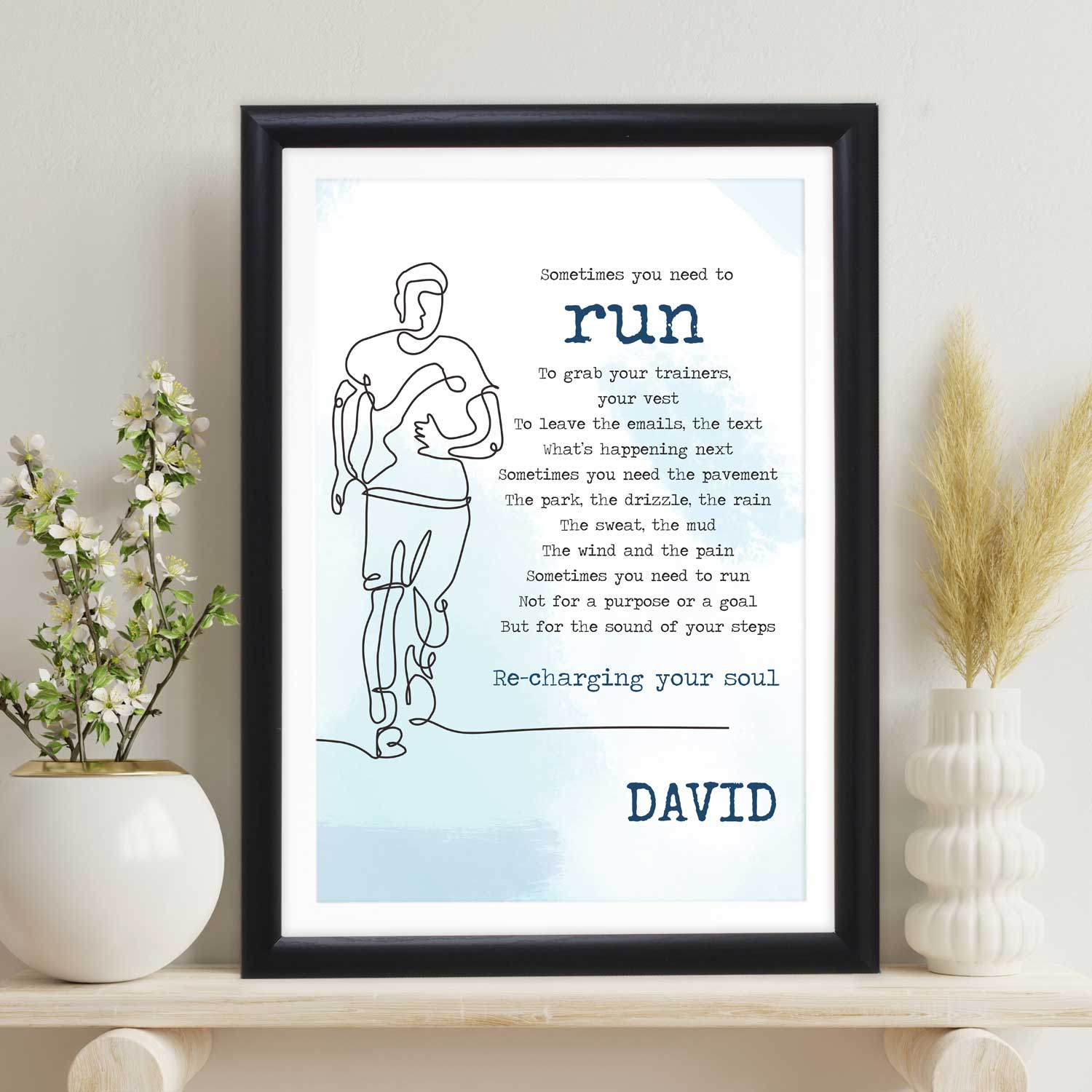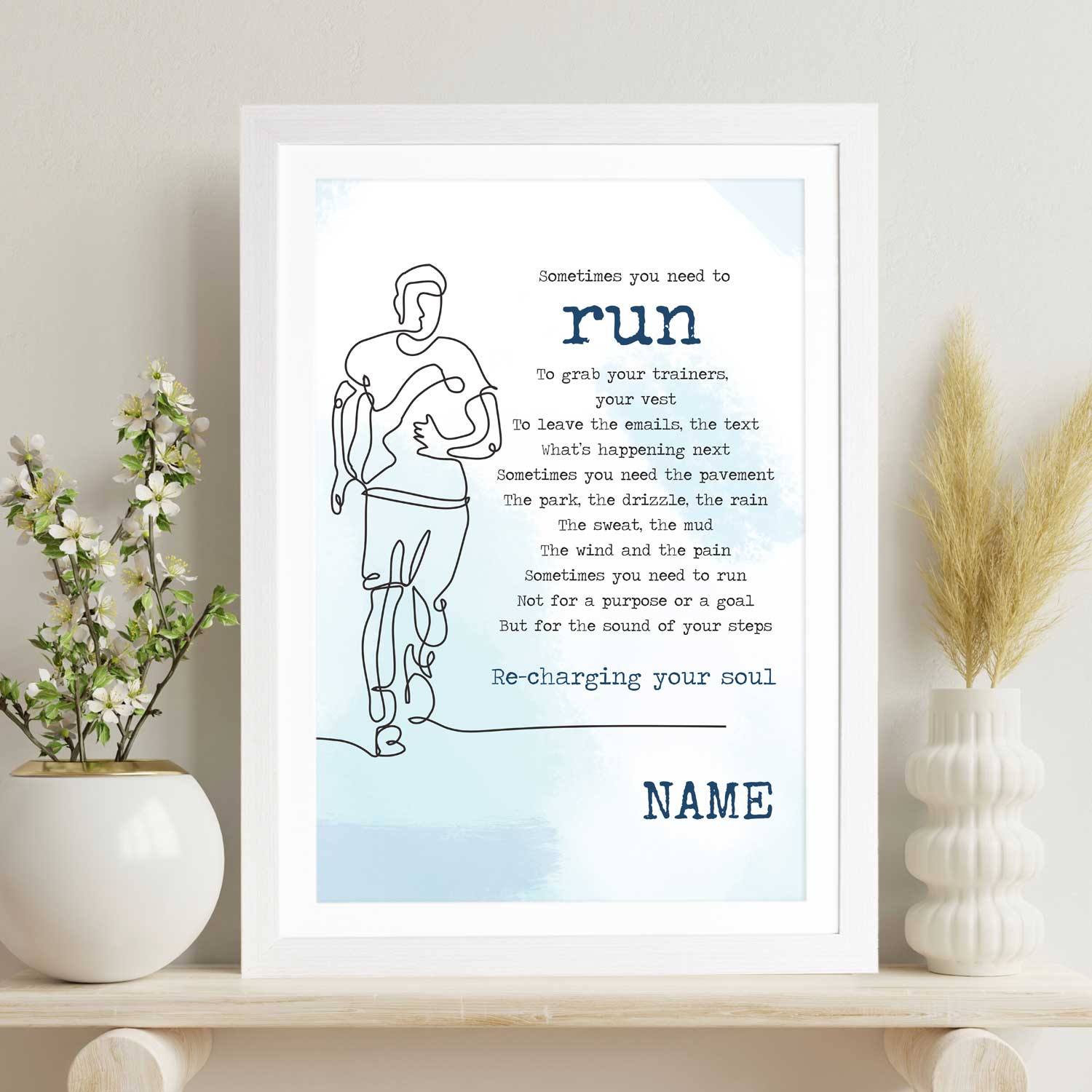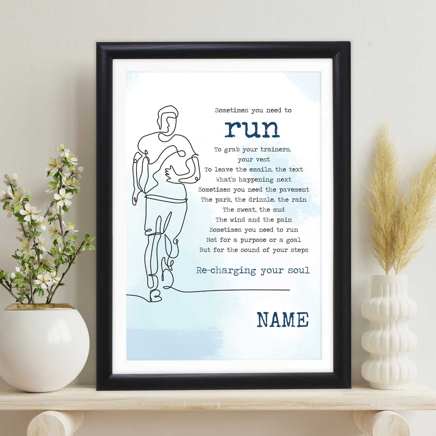 Looking for the perfect gift for a passionate runner? Our "Sometimes You Need to Run Poem" Personalised Marathon Poster is a heartfelt and inspiring choice. This unique poster blends a motivating poem with personalisation, allowing you to commemorate their running journey in a truly special way. Whether it's a birthday, an accomplishment, or just a thoughtful surprise, this poster is a gift that speaks to their dedication and perseverance. Order now to give the gift of motivation and personalisation to the runner in your life.