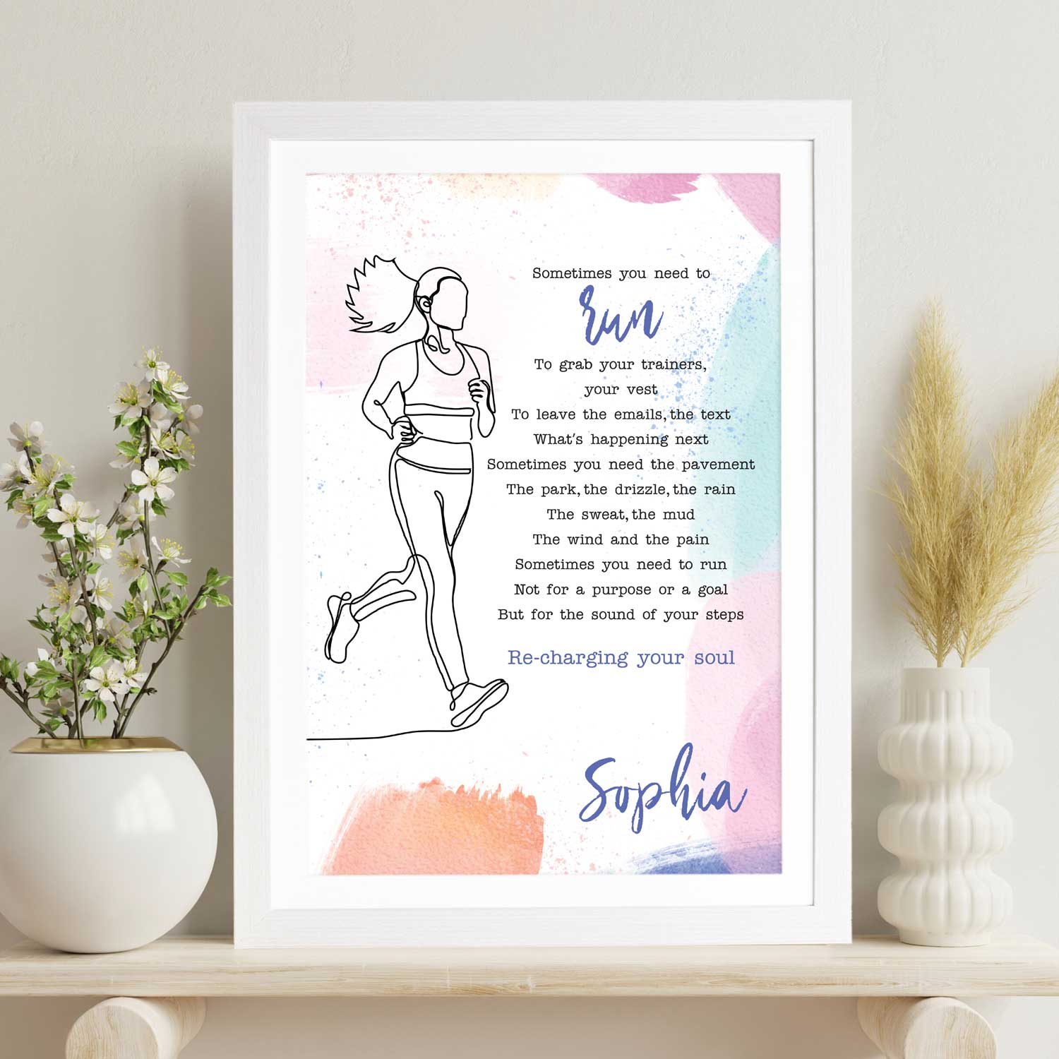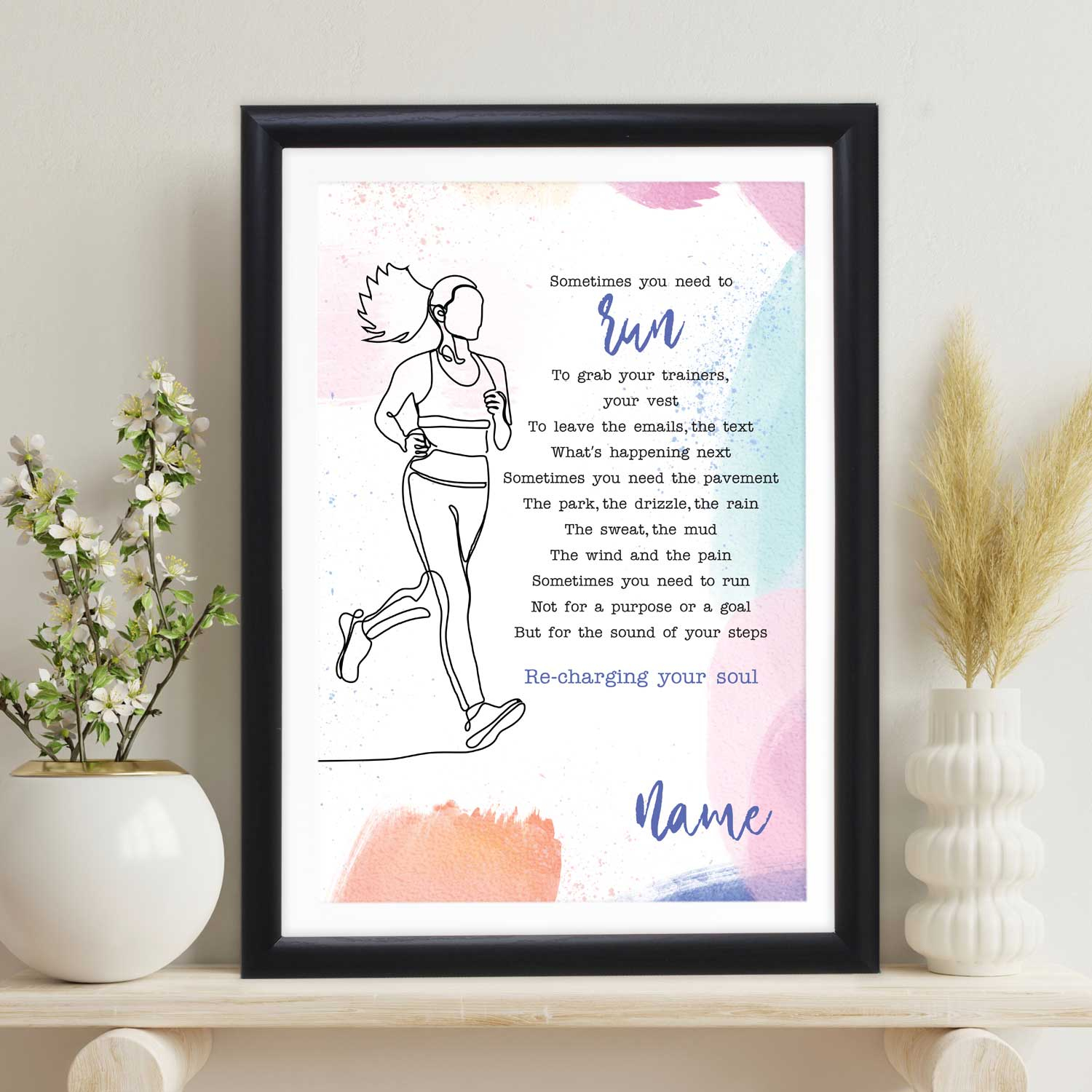Looking for the perfect gift for a passionate runner? Our "Sometimes You Need to Run Poem" Personalised Marathon Poster is a heartfelt and inspiring choice. This unique poster blends a motivating poem with personalisation, allowing you to commemorate their running journey in a truly special way. Whether it's a birthday, an accomplishment, or just a thoughtful surprise, this poster is a gift that speaks to their dedication and perseverance. Order now to give the gift of motivation and personalisation to the runner in your life.