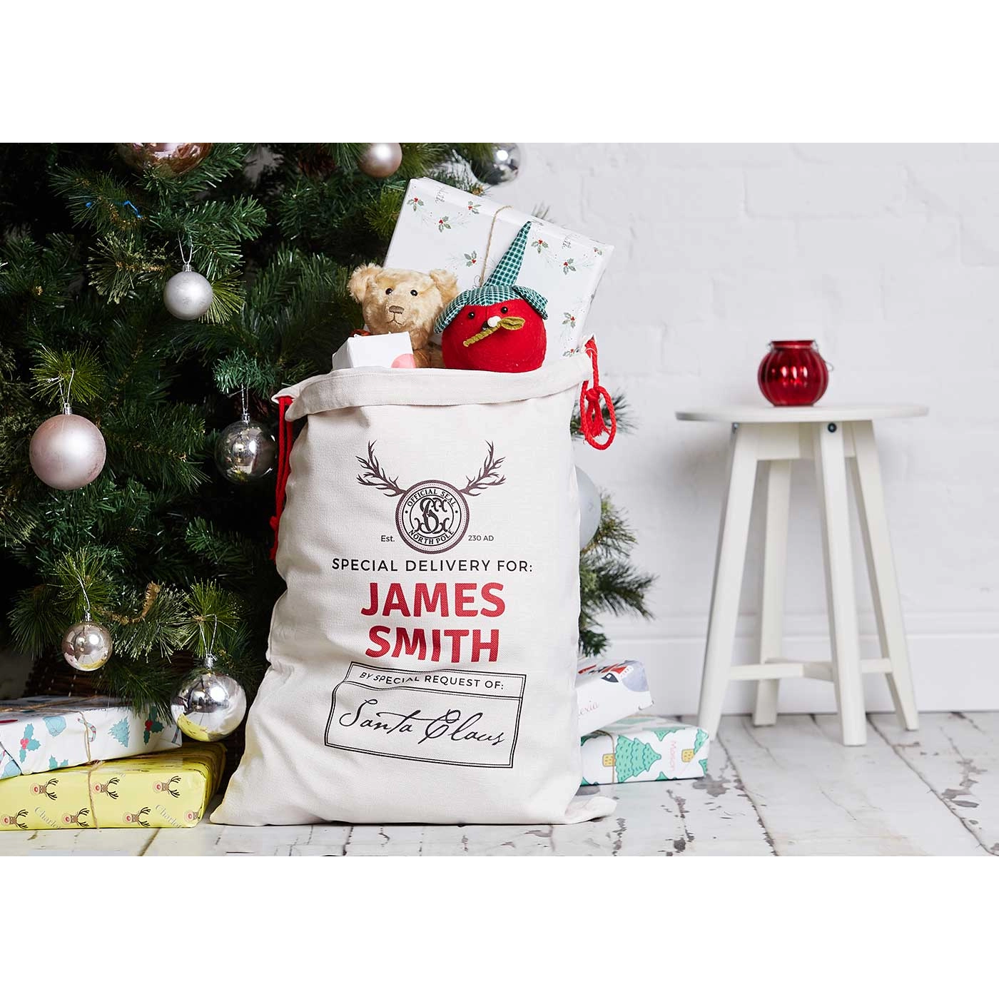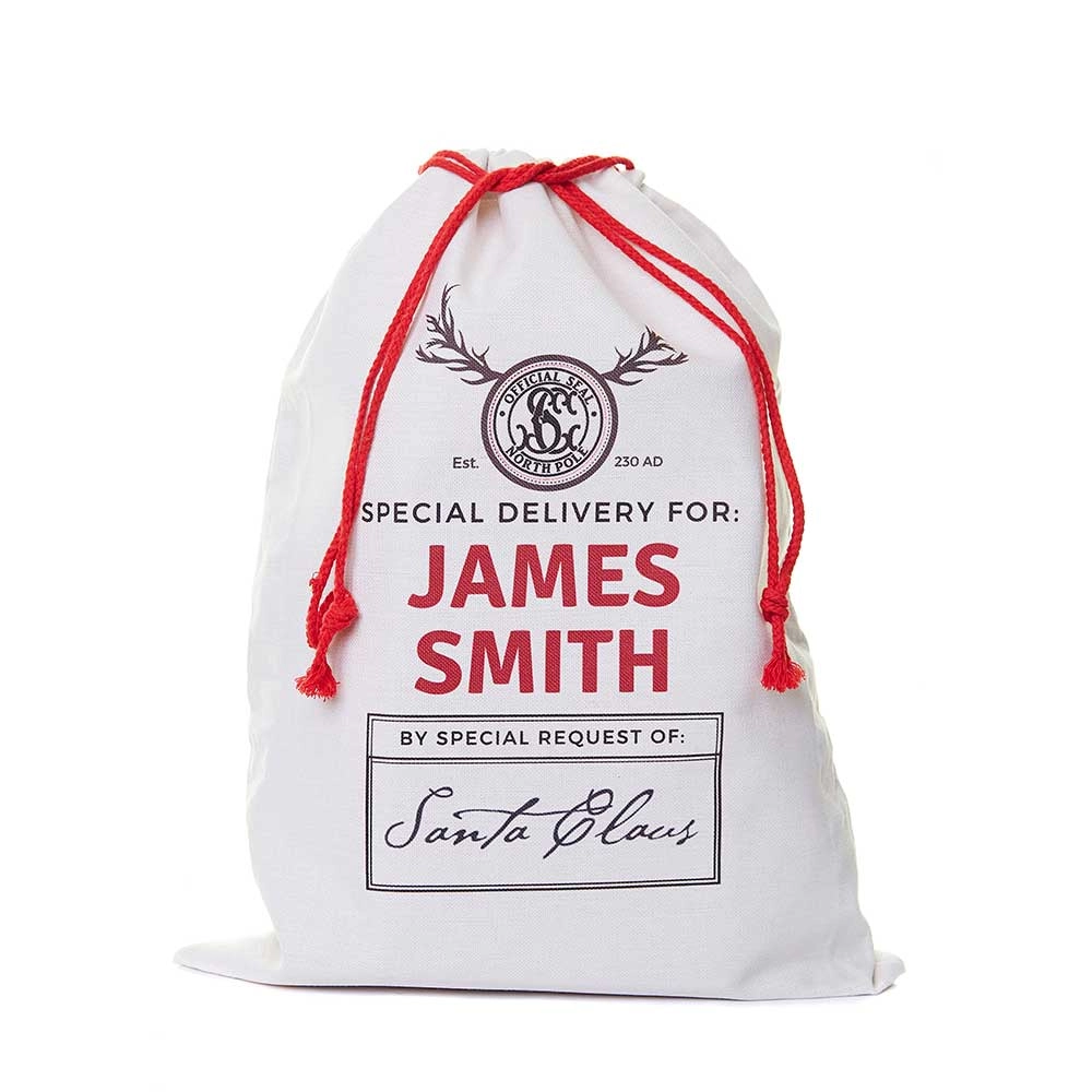 These beautifully designed personalised Santa Sacks will be enjoyed for many years. An alternative to a Christmas stocking, the sack is personalised with the recipient's name.