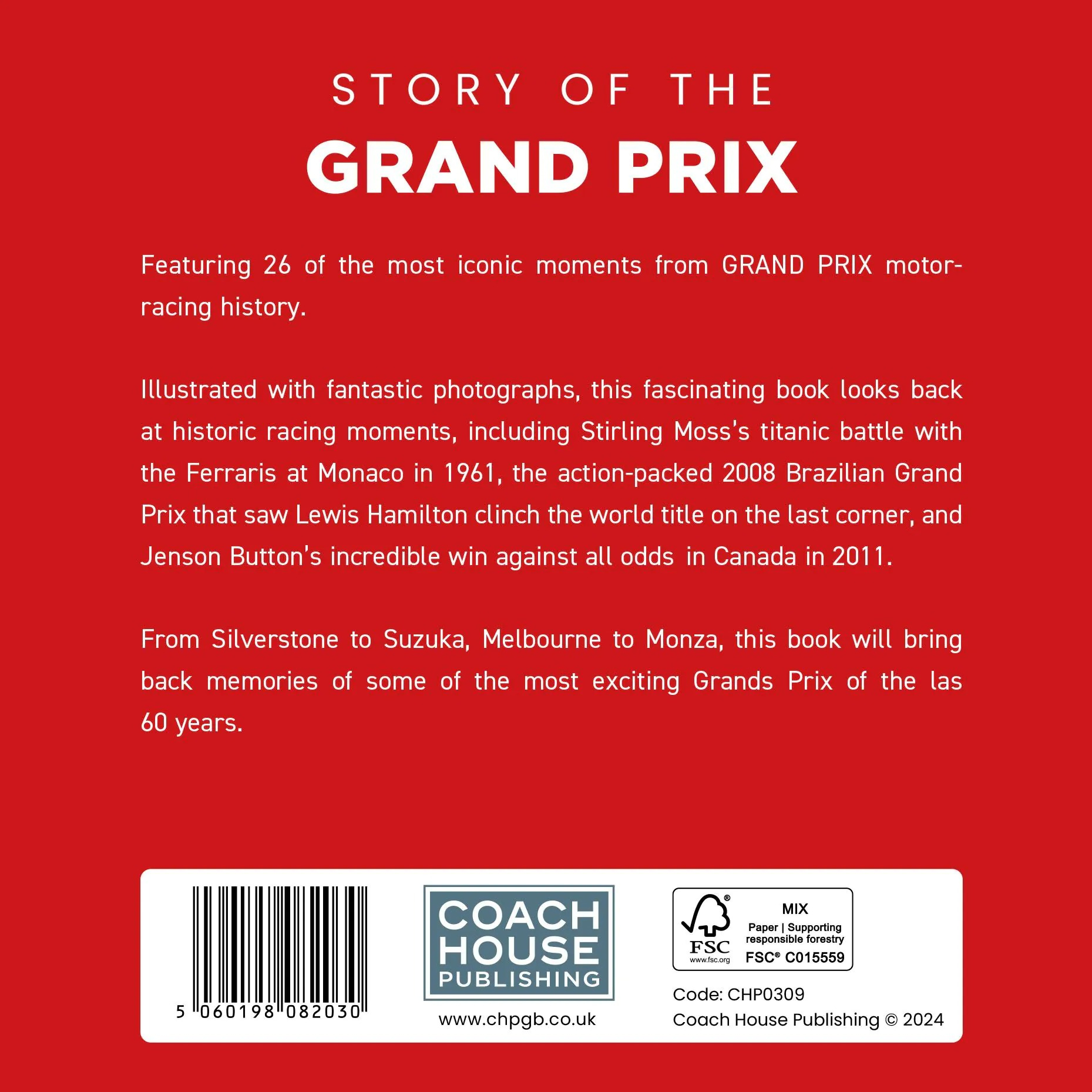 Celebrate the legends, the drama, and the excitement of Grand Prix racing with this inspiring and beautifully crafted collector’s book.