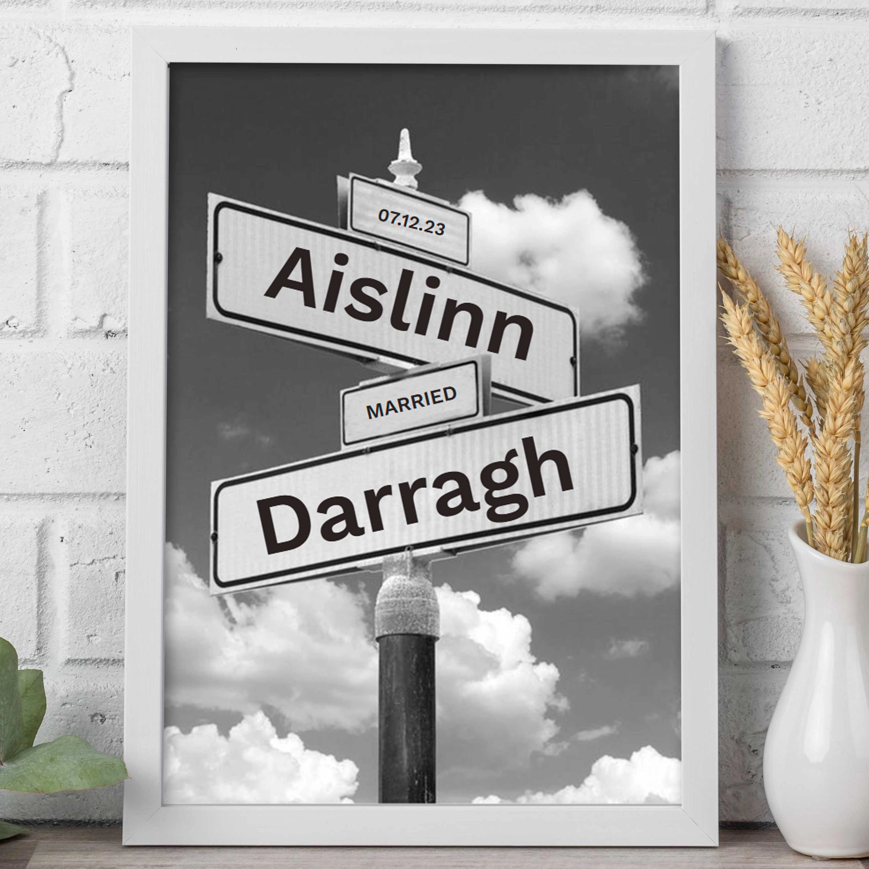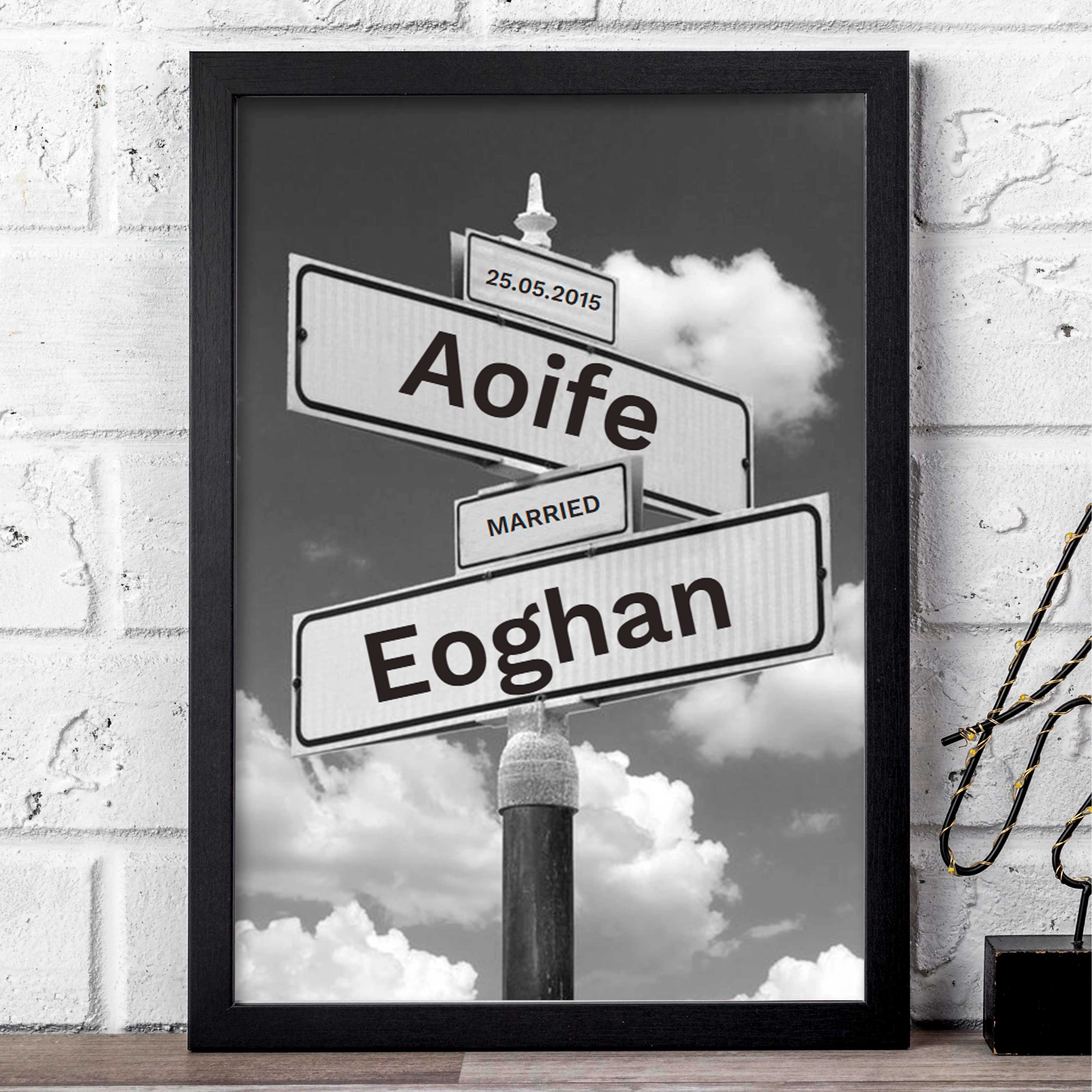 Celebrate your special bond with this stunning keepsake! Customise it with names, date and occasion. This piece features a beautifully crafted street sign, paired with a customizable frame that commemorates a special moment in your relationship. Whether it's the place where you first met, your wedding day, or a location that holds sentimental value, this frame will turn any significant address into a treasured keepsake.