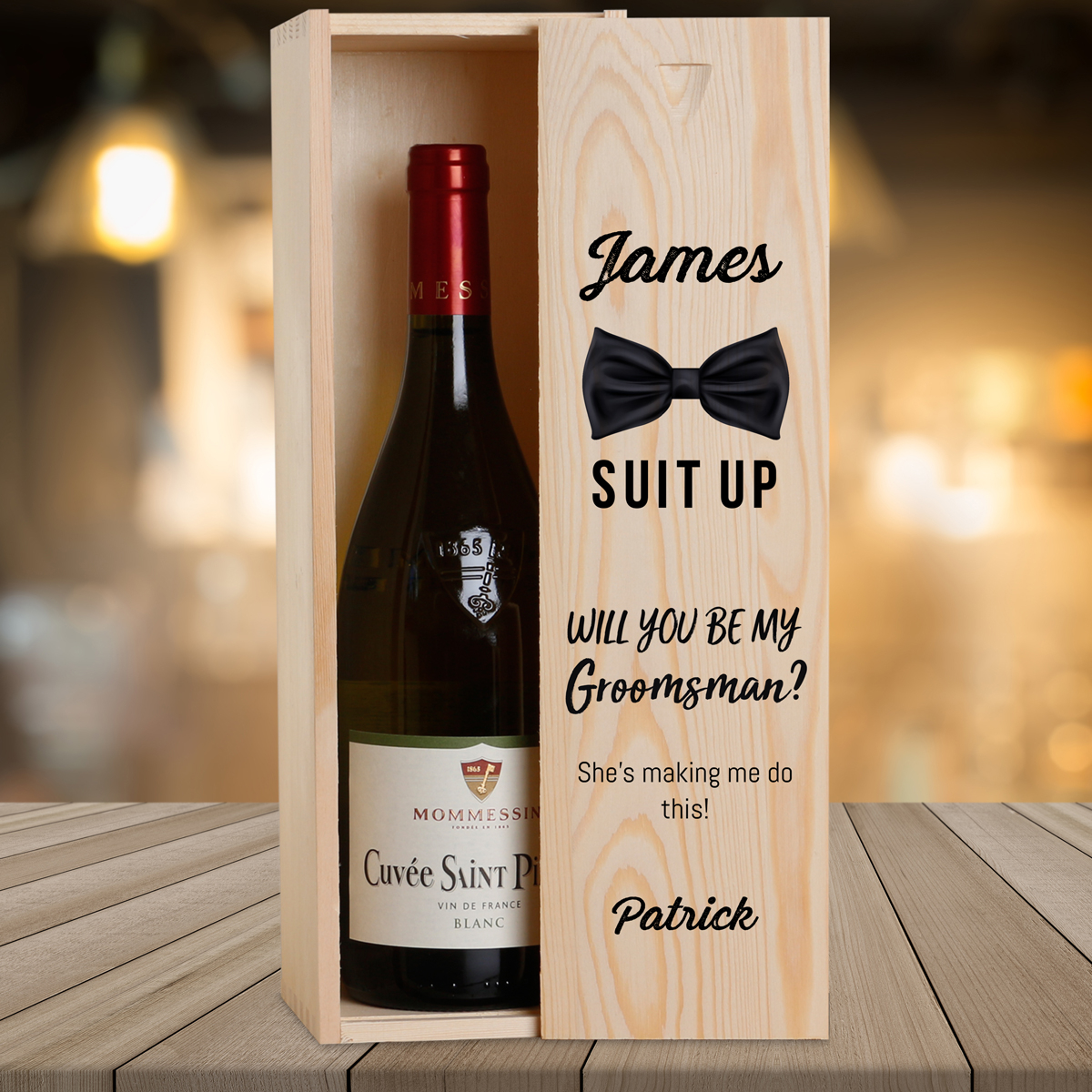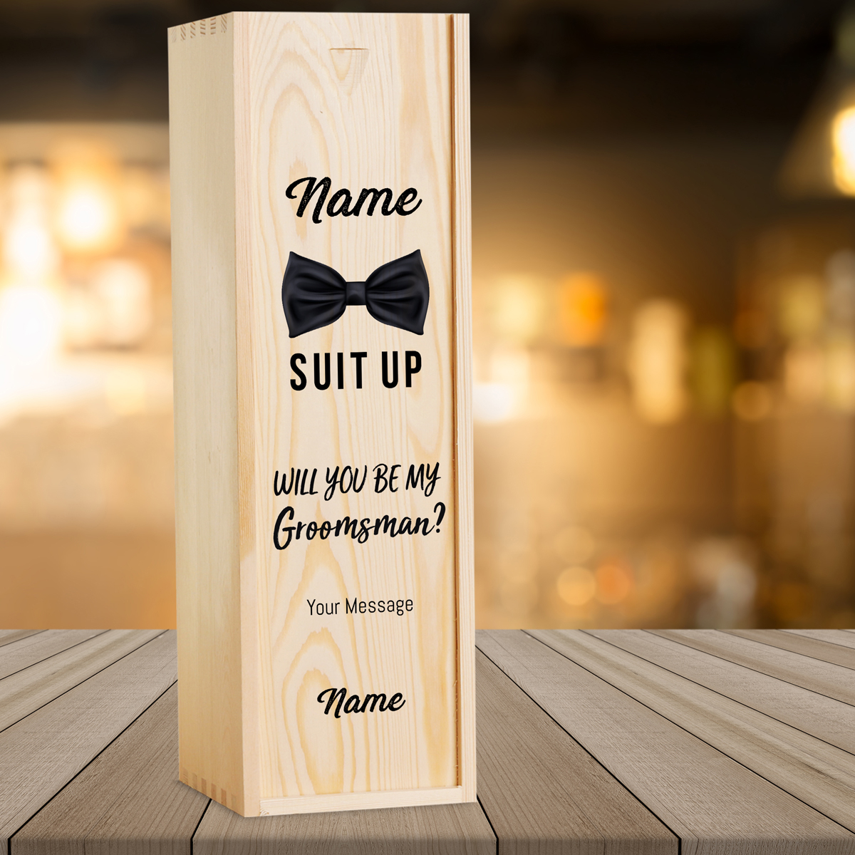 This personalised wine box with a bottle of wine makes the perfect gift to your Groomsman.