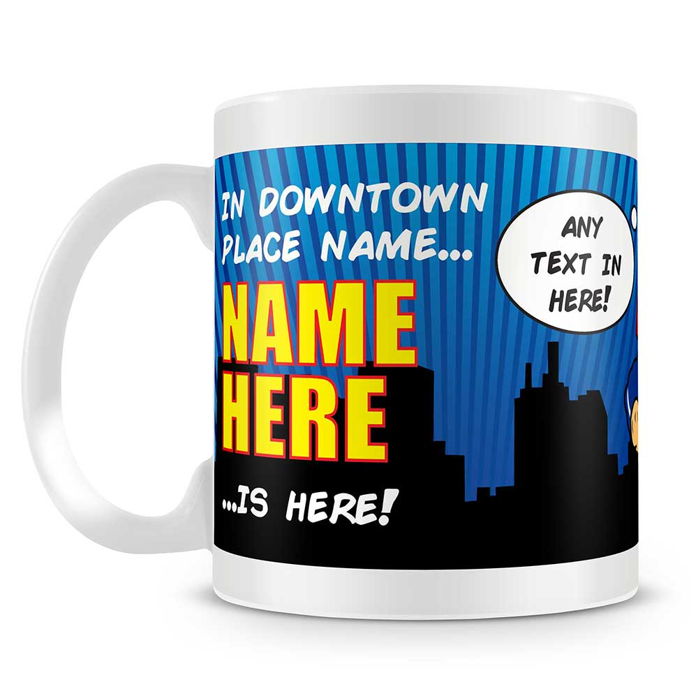 A fun comic-styled mug featuring your super-hero! Ideal for any occasion and makes a fantastic gift and enjoyed everytime they enjoy a cuppa!