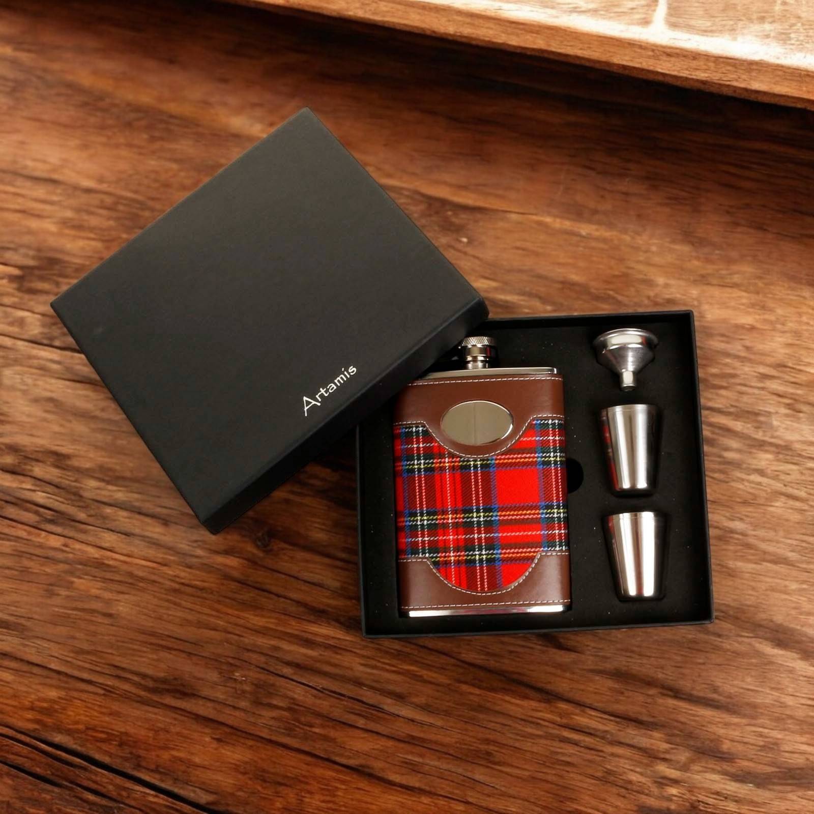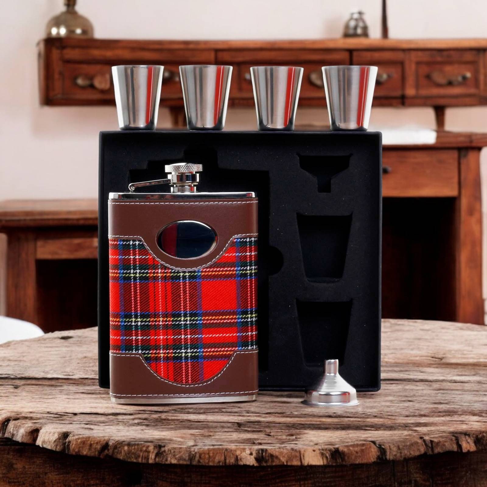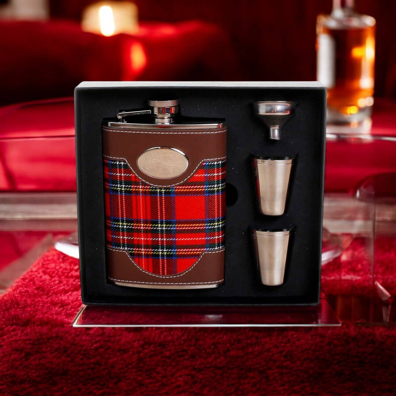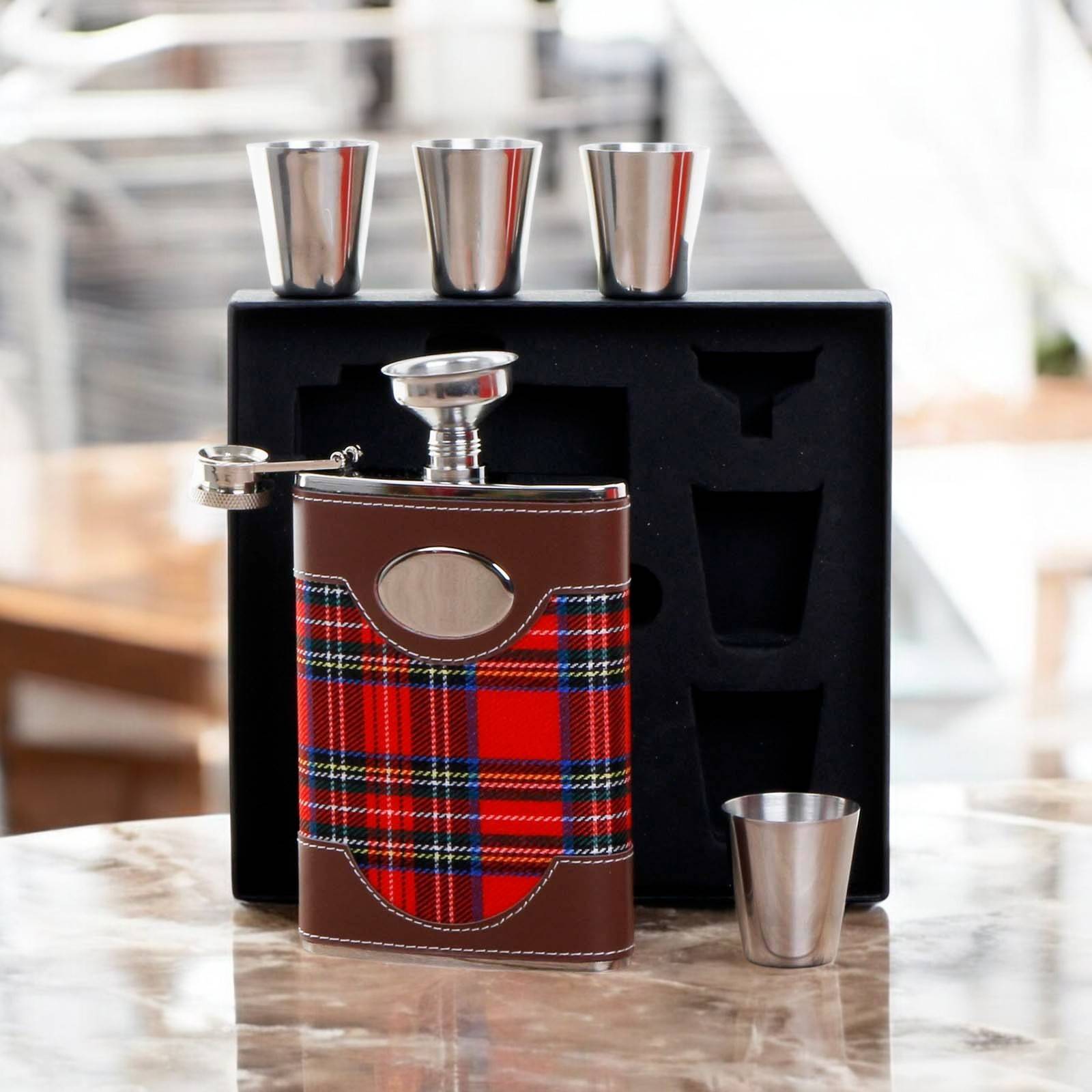 This stunning tartan flask is the perfect way to sit back and enjoy a ‘wee Dram’ complete with two stainless steel cups and a handy funnel for easy filling you’ll find it hard to come across another flask that is quite as stunning as this!