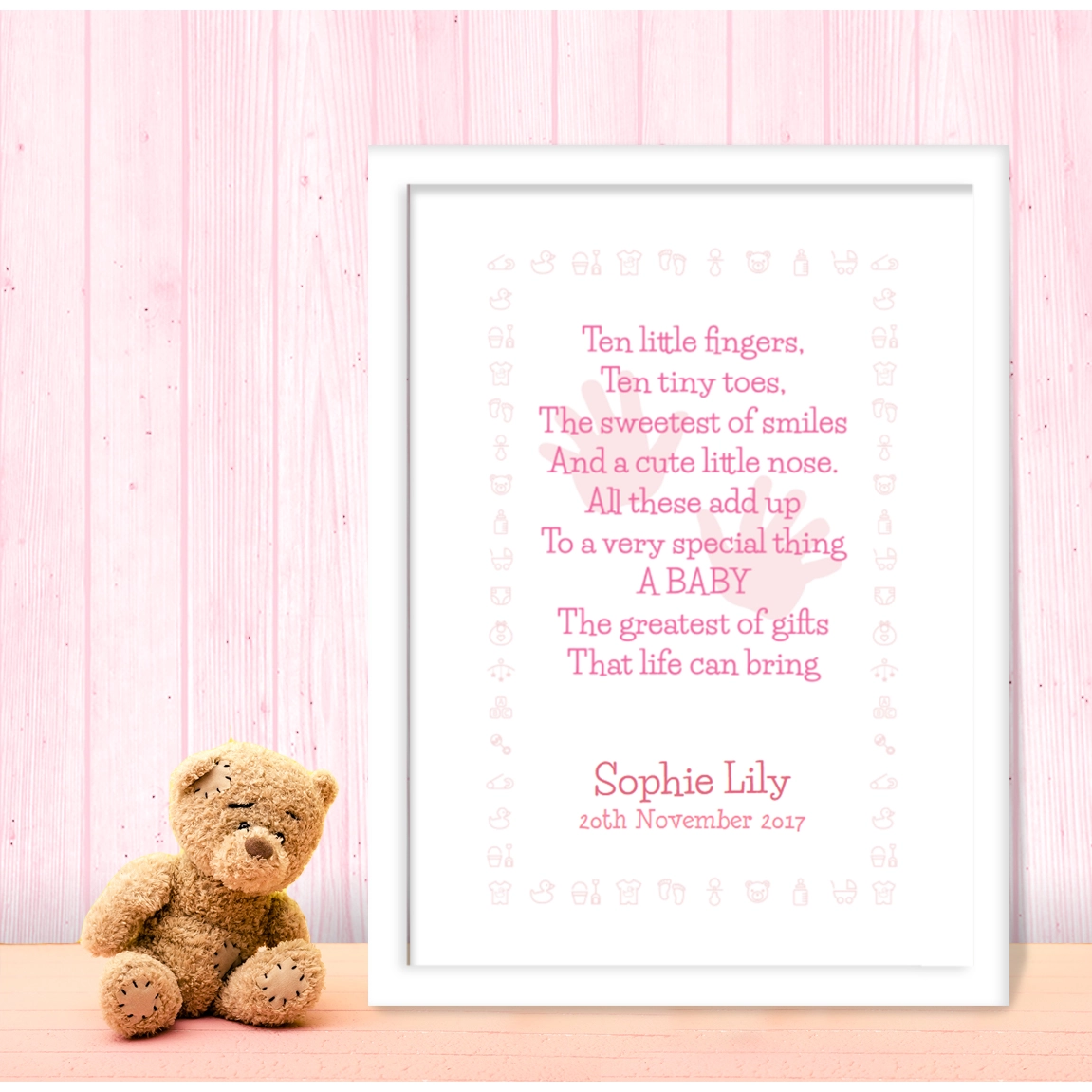 A beautiful gift for any new baby that will look fantastic in their nursury! The print contains Baby's name and date of birth.