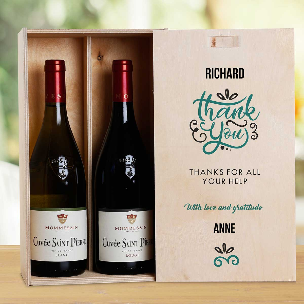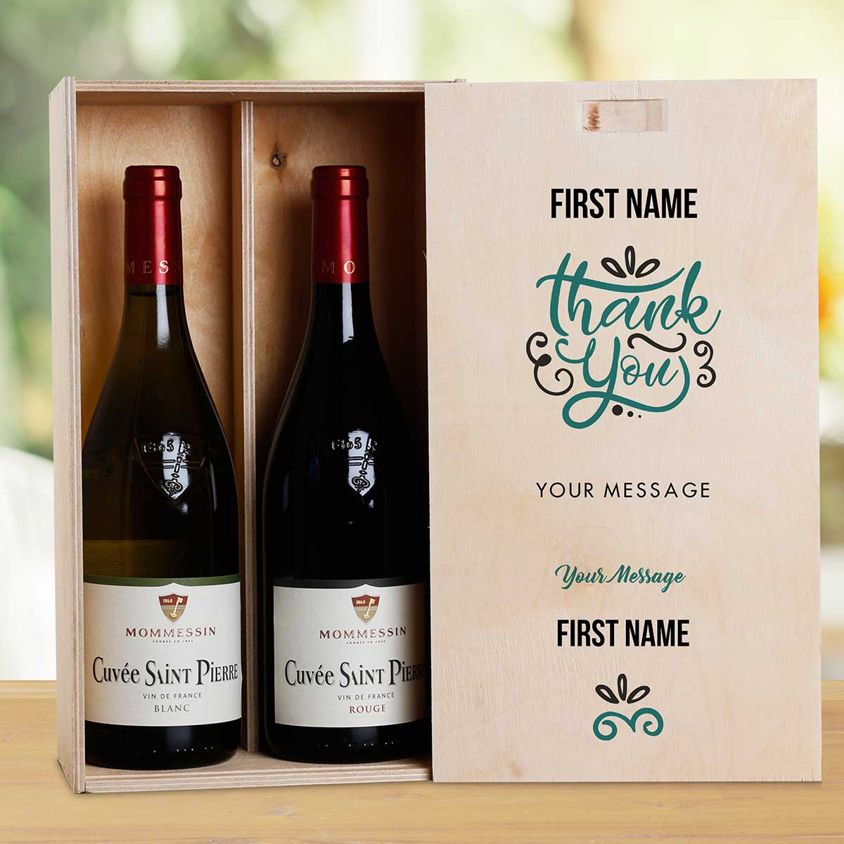 This personalised wine box with two bottles of wine makes the perfect gift.