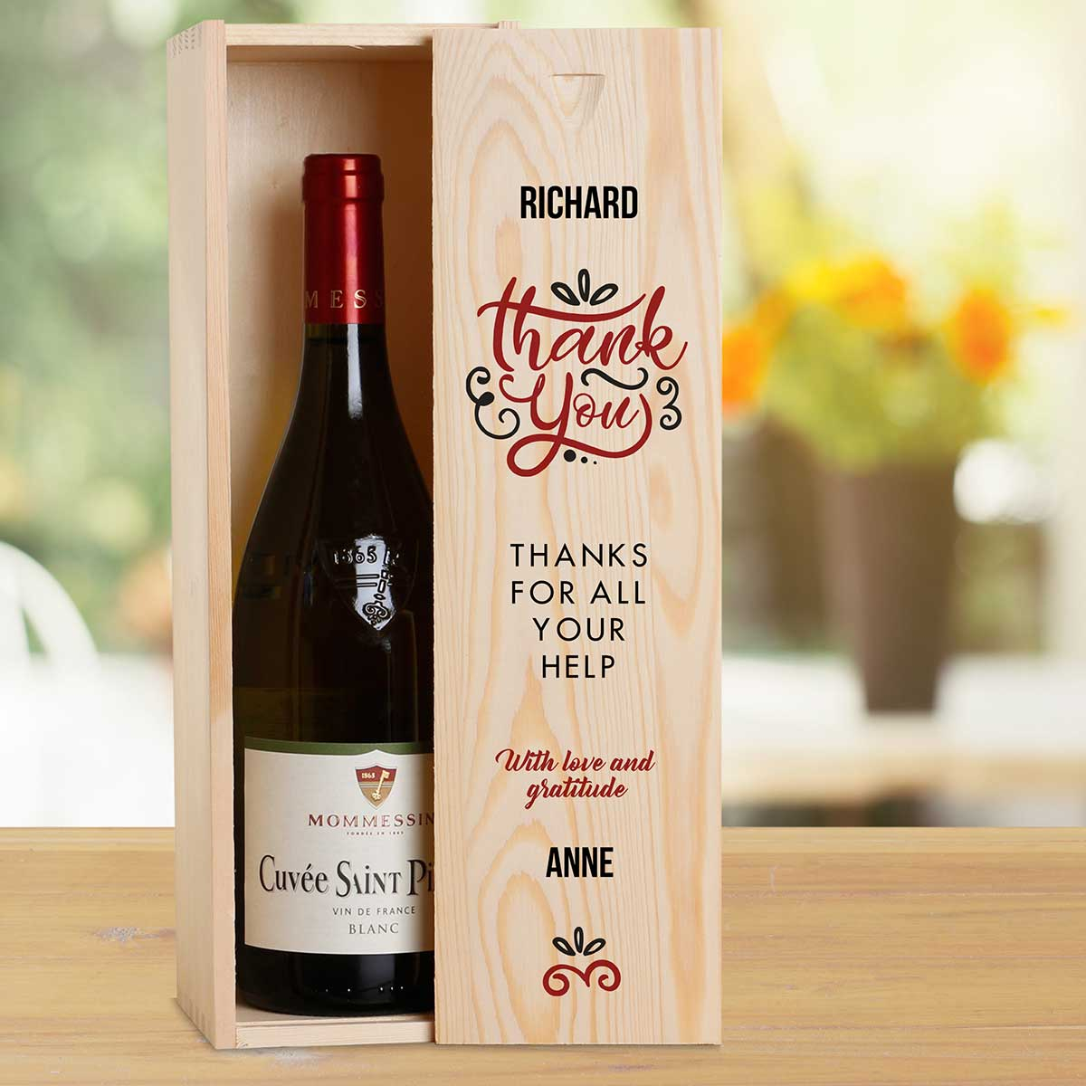 This personalised wine box with a bottle of wine makes the perfect gift.