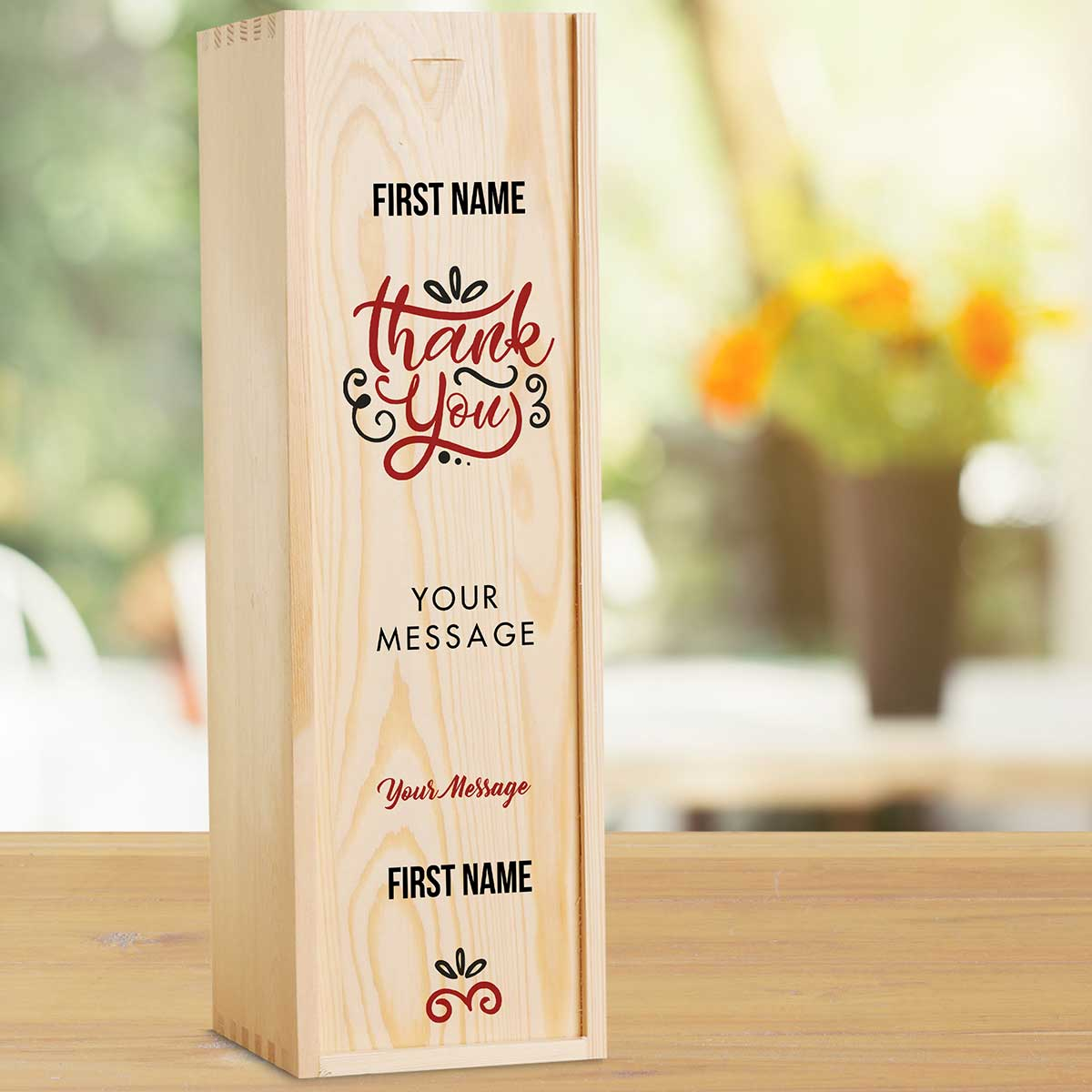 Thank You Red Personalised Wooden Single Wine Box