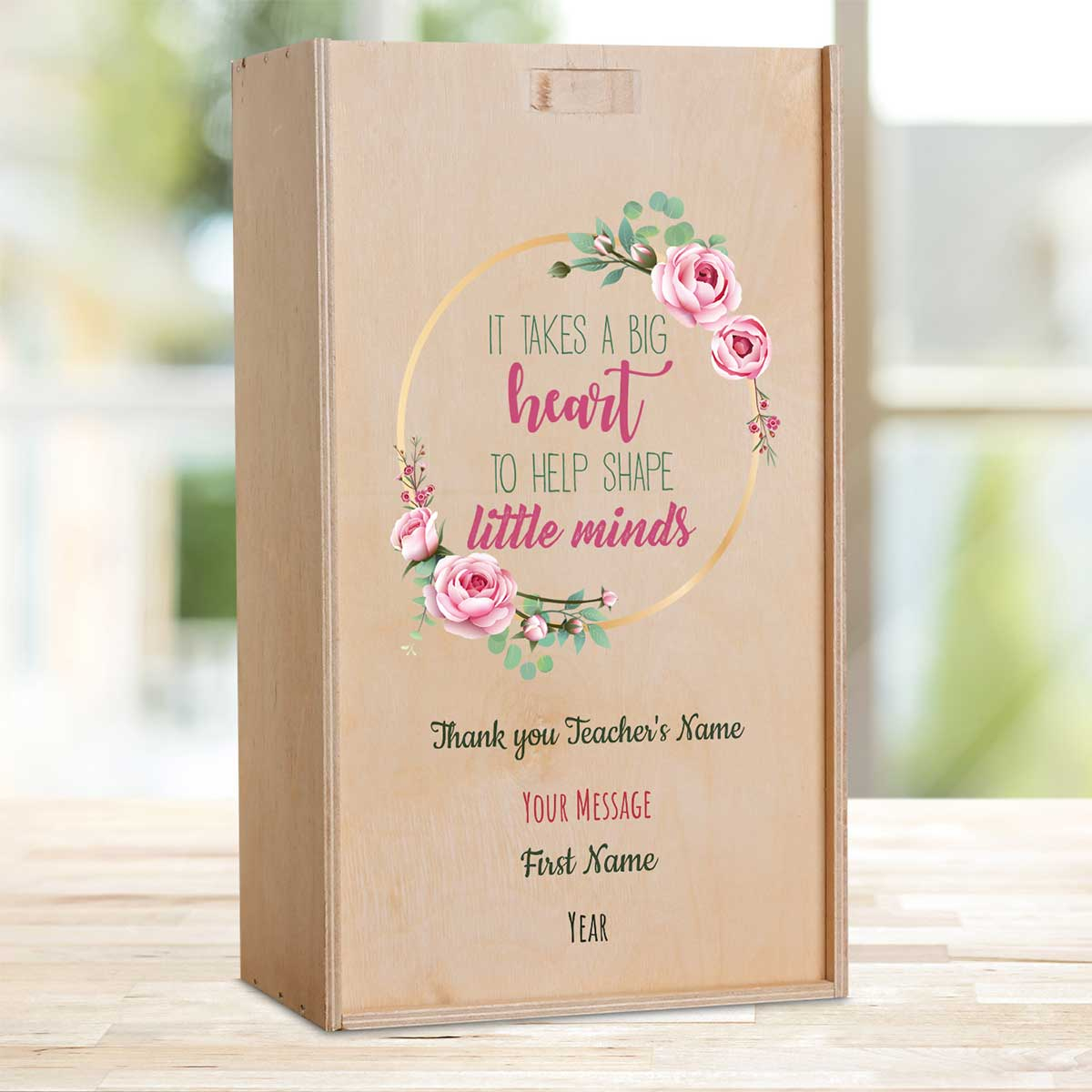 Thank You Teacher Flowers Personalised Wooden Double Wine Box