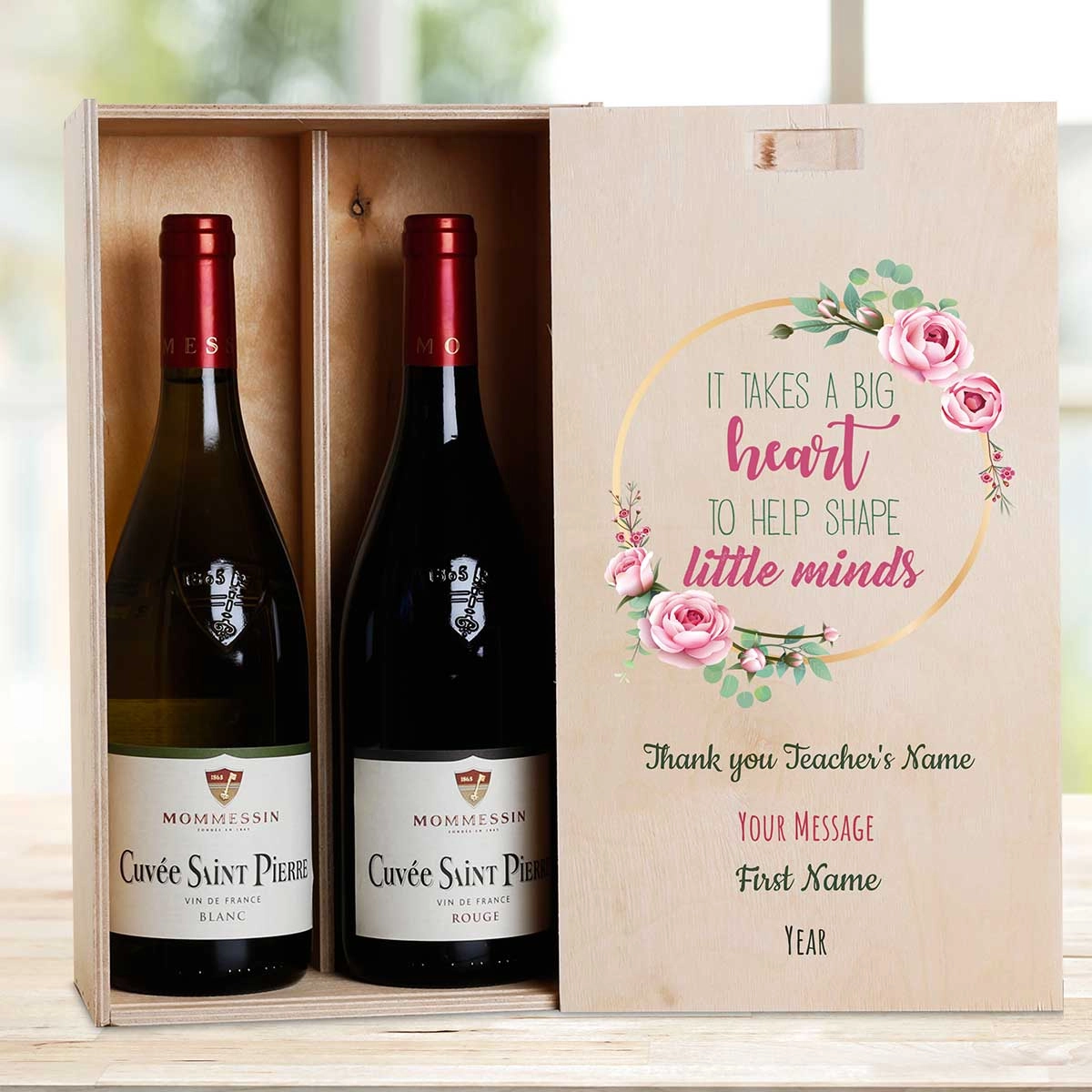 This personalised wine box with two bottles of wine makes the perfect gift to thank teacher.