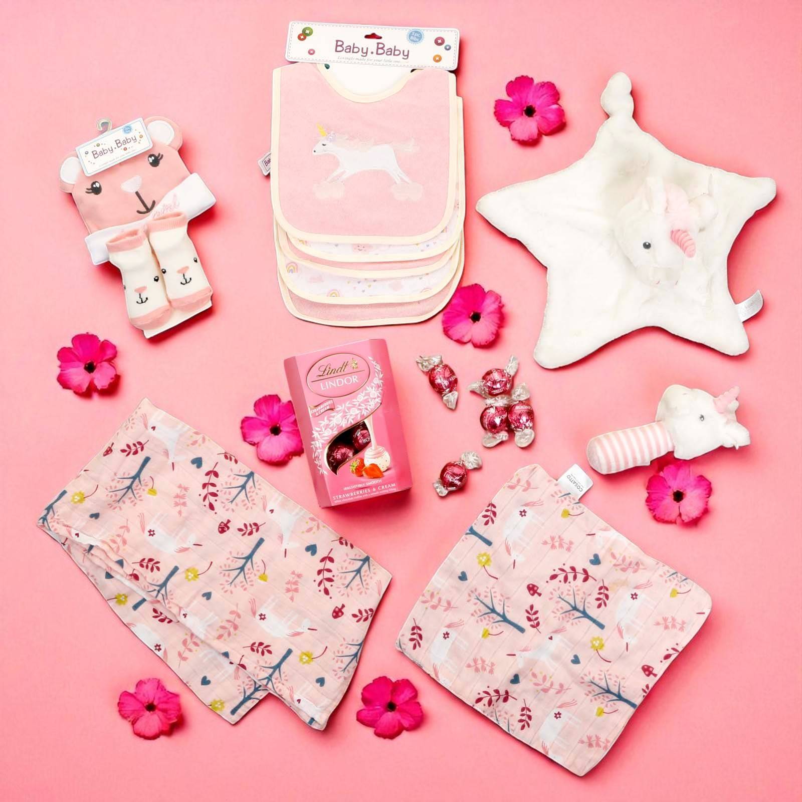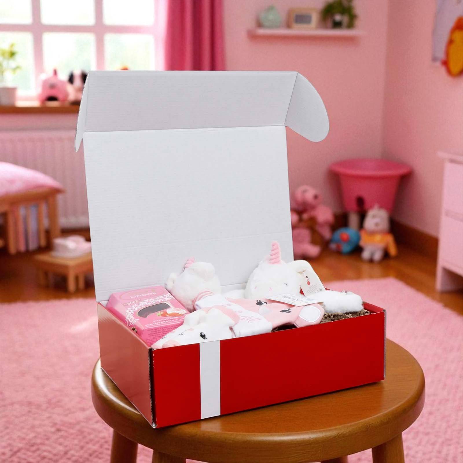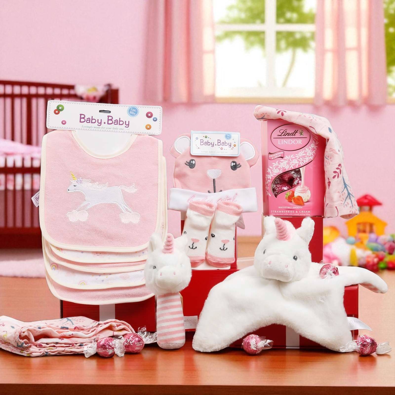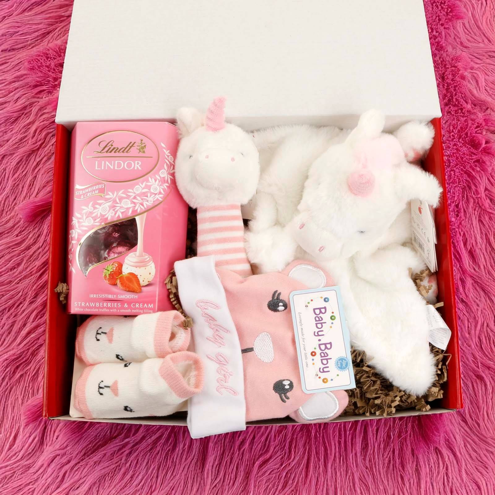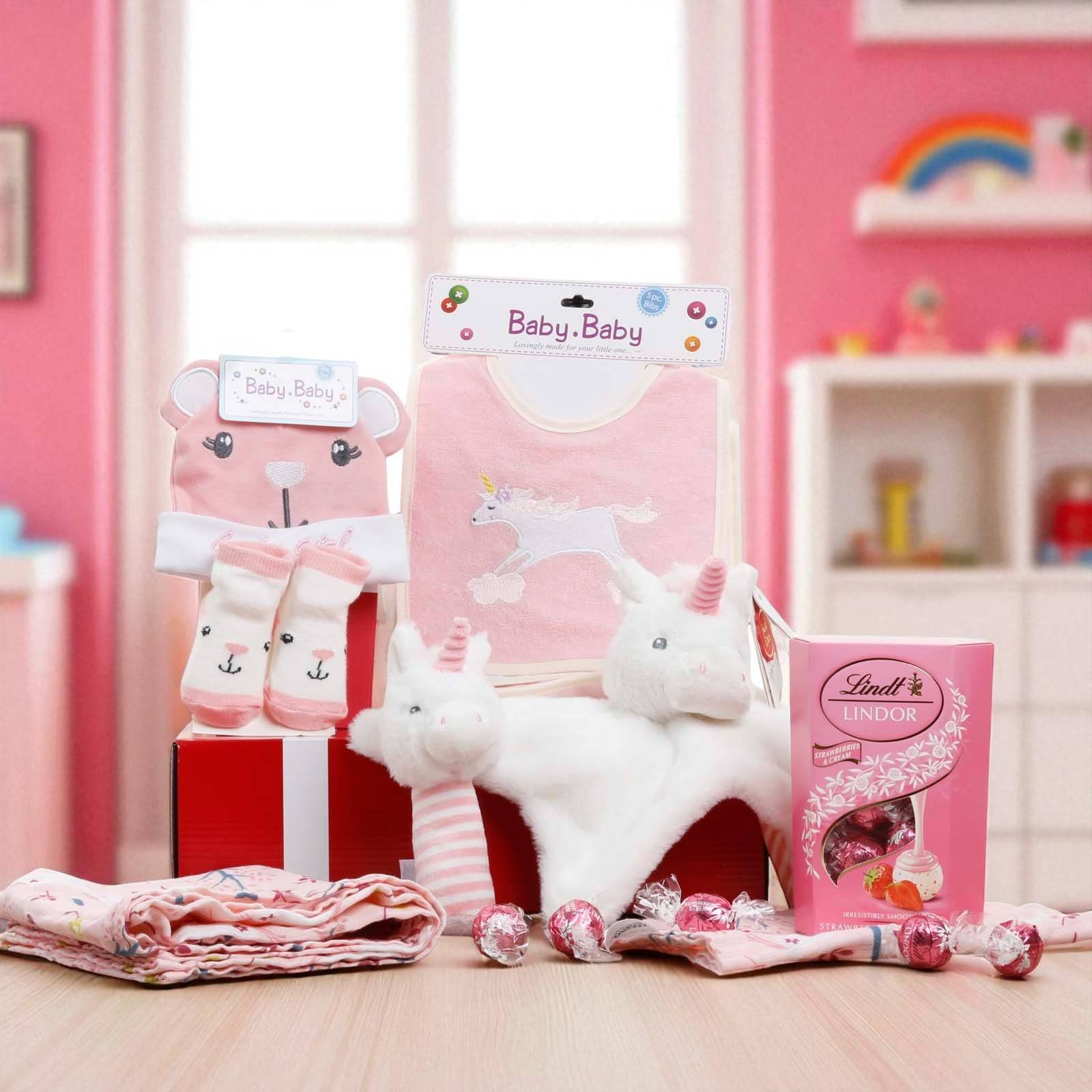 Give a gift that brings comfort, fun, and sweetness — The Baby Girl Unicorn Gift Box is a magical way to celebrate the joy of a baby girl and create lasting happy memories.