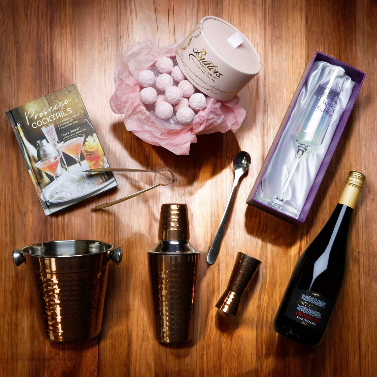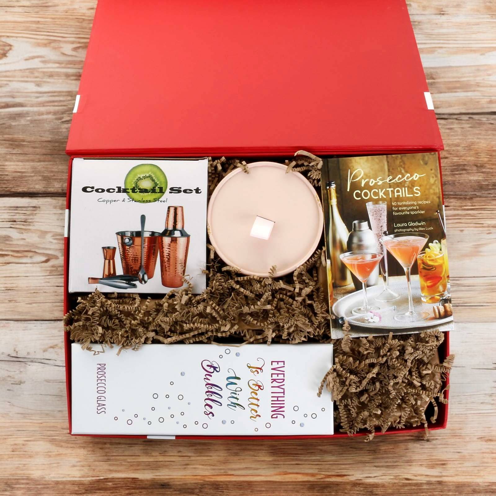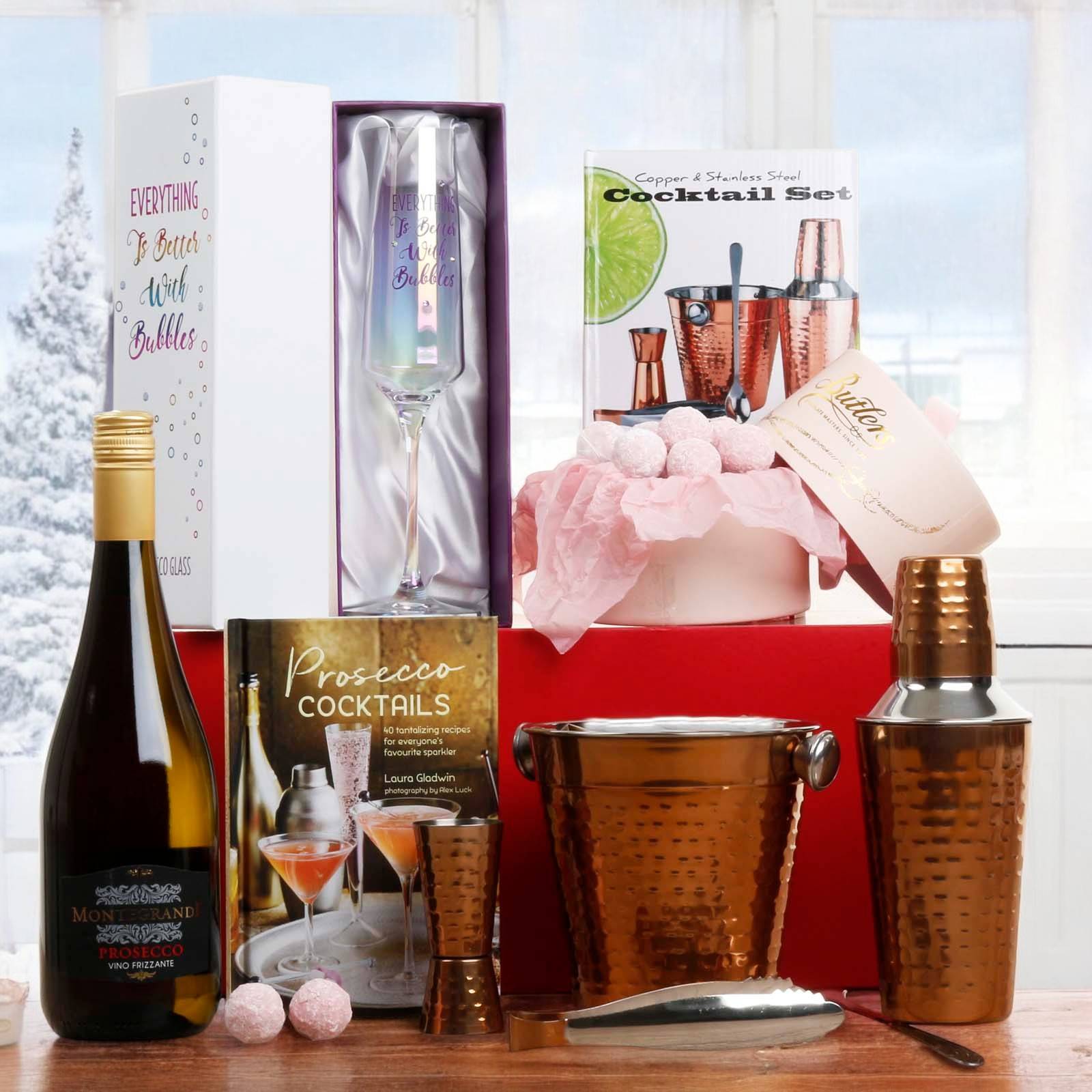 This luxurious hamper is a perfect gift for cocktail enthusiasts and those who appreciate a touch of elegance. It features a premium cocktail set for crafting your favorite drinks, paired with an insightful cocktail book to inspire new creations. A bottle of crisp Prosecco adds a sparkling touch to any occasion, complemented by a stylish Prosecco glass for the ultimate drinking experience.