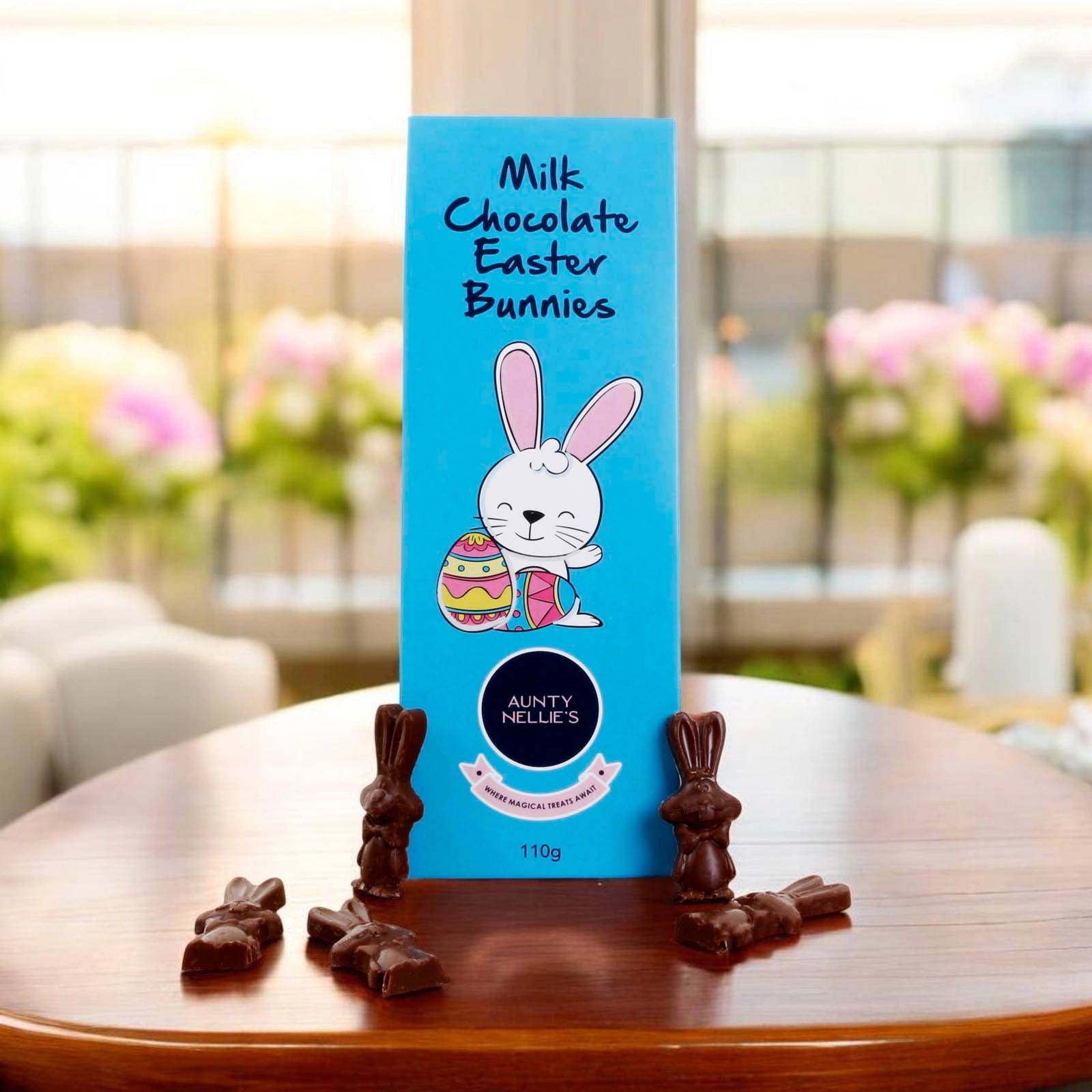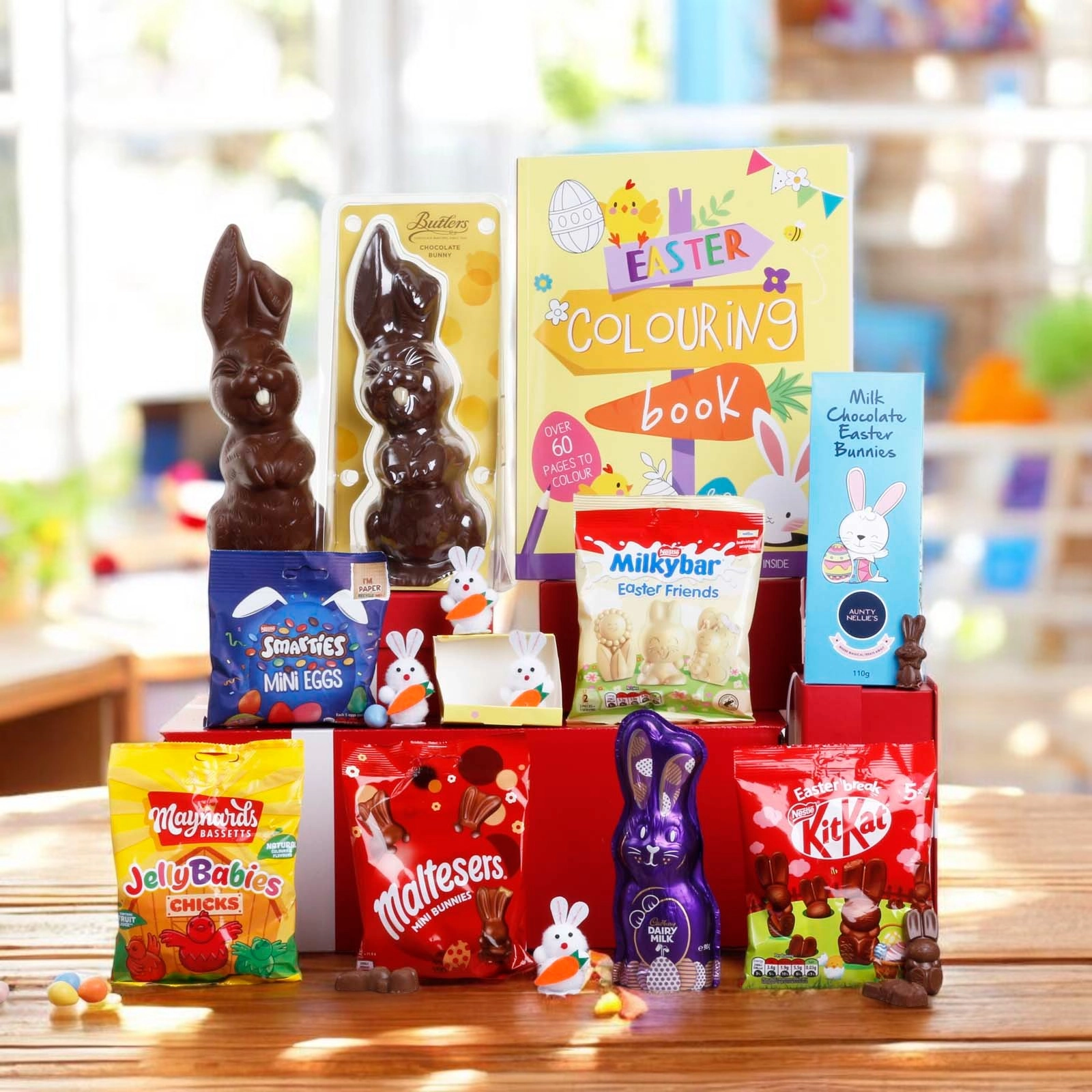 Inside the gift box you will find lots of classic chocolate bunnies with some chocolate eggs!!