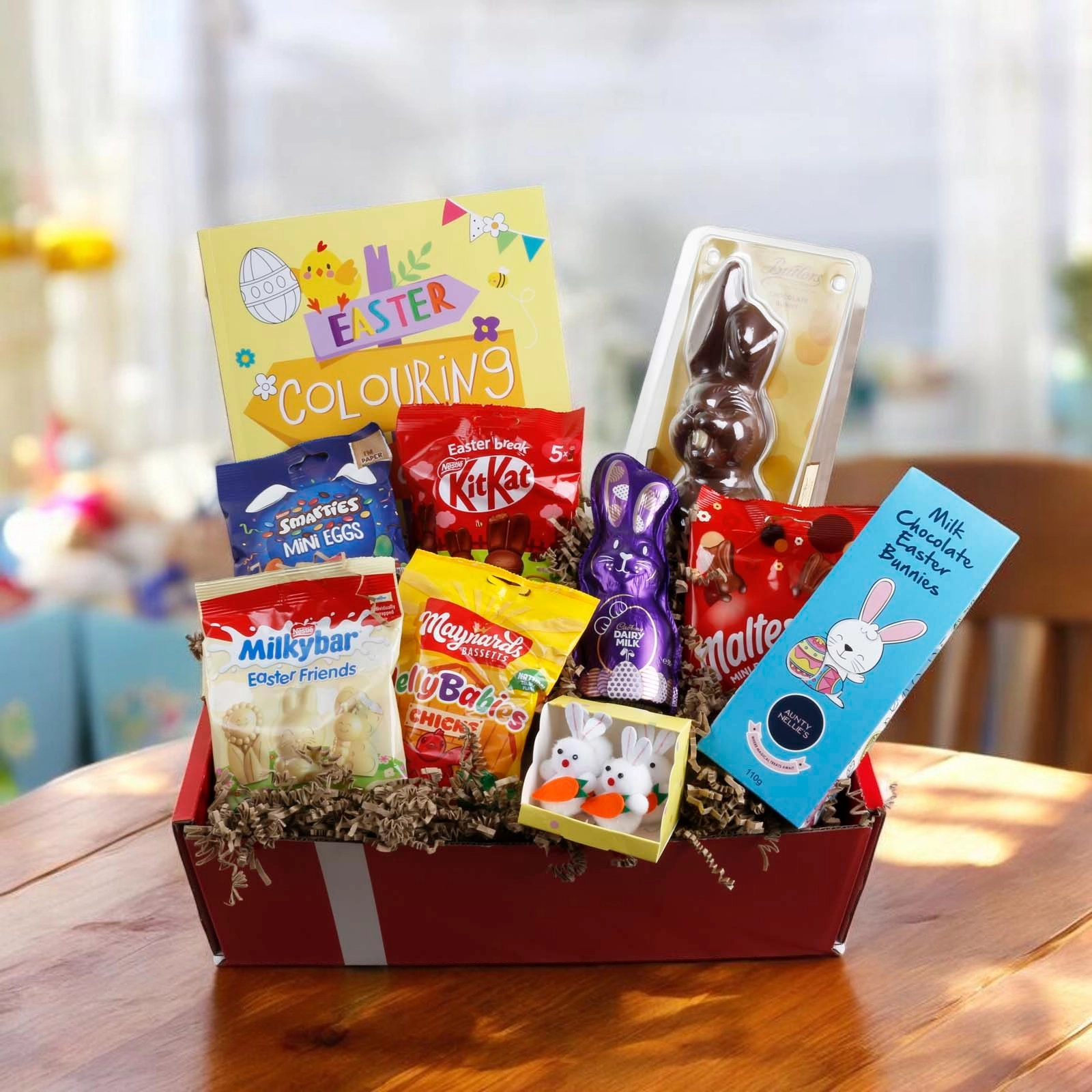 An Easter Bunny Hamper for both big and little folk, full of delicious Easter treats,  presented in a lovely gift box.
