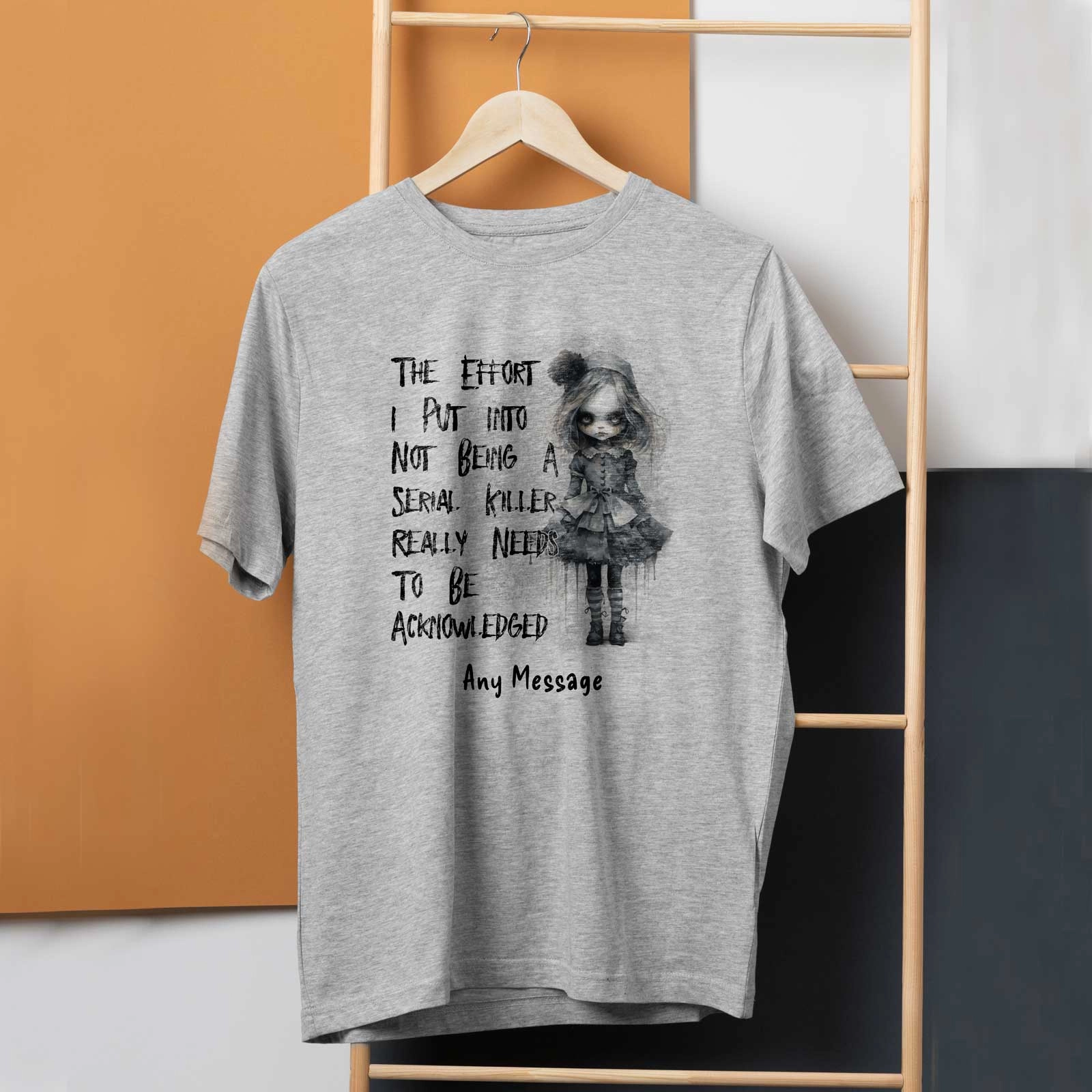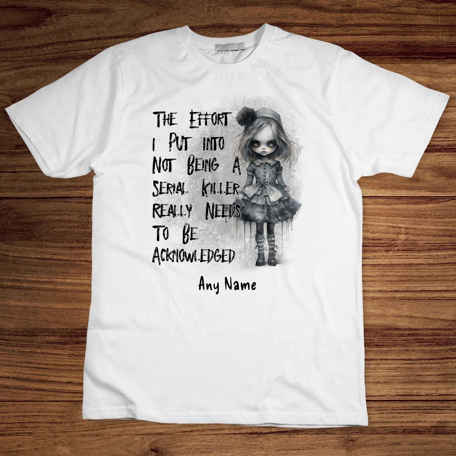 Our "The Effort I Put Into Not Being a Serial Killer Really Needs to Be Acknowledged" – Personalised T-Shirt is just the thing!