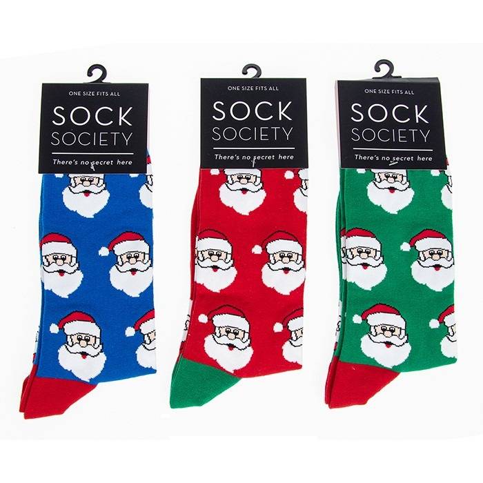 Blue luxury scarf & black gloves, & blue Santa socks.