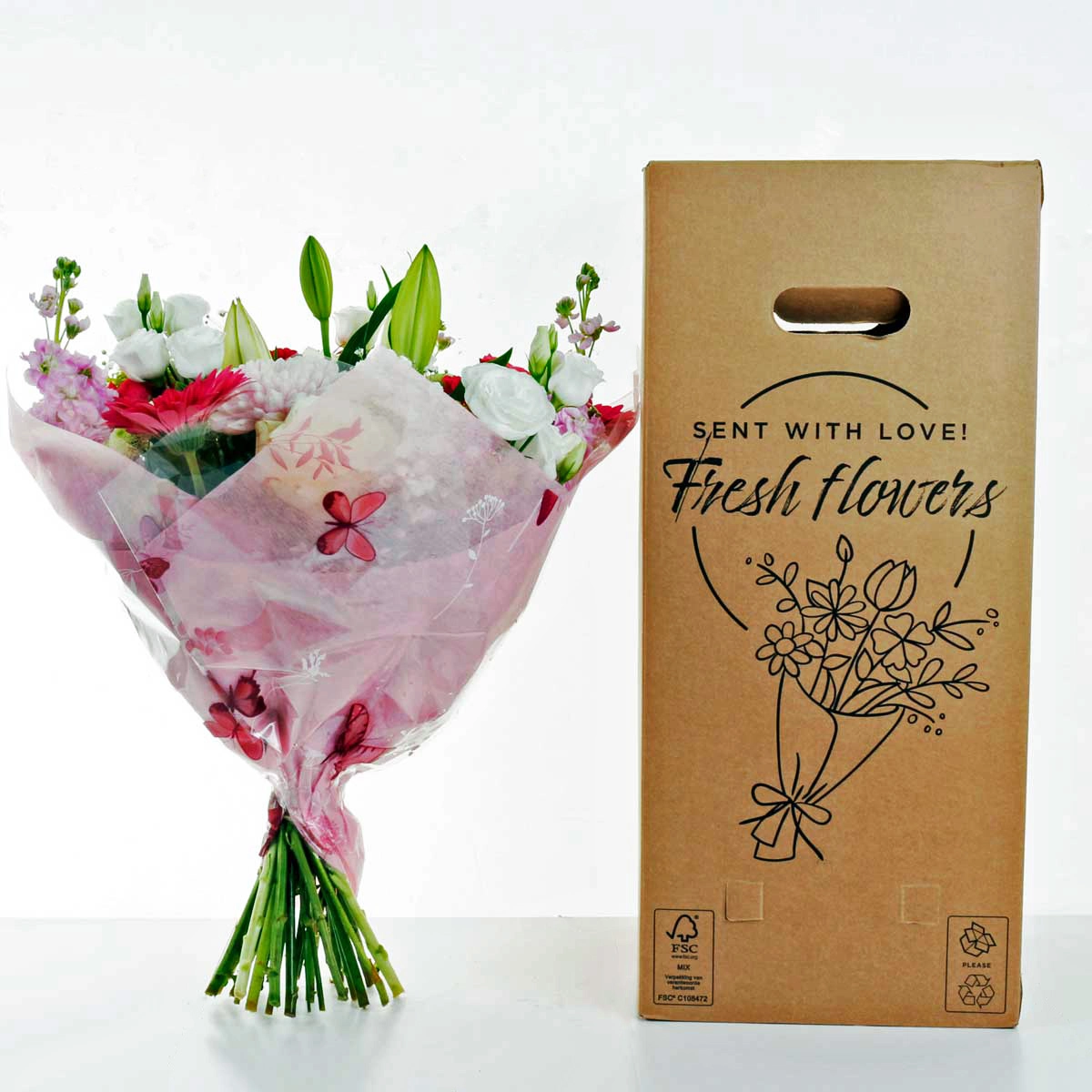• Our fresh flower bouquets are packed and shipped direct from our Dublin warehouse together with any other gifts and cards ordered.