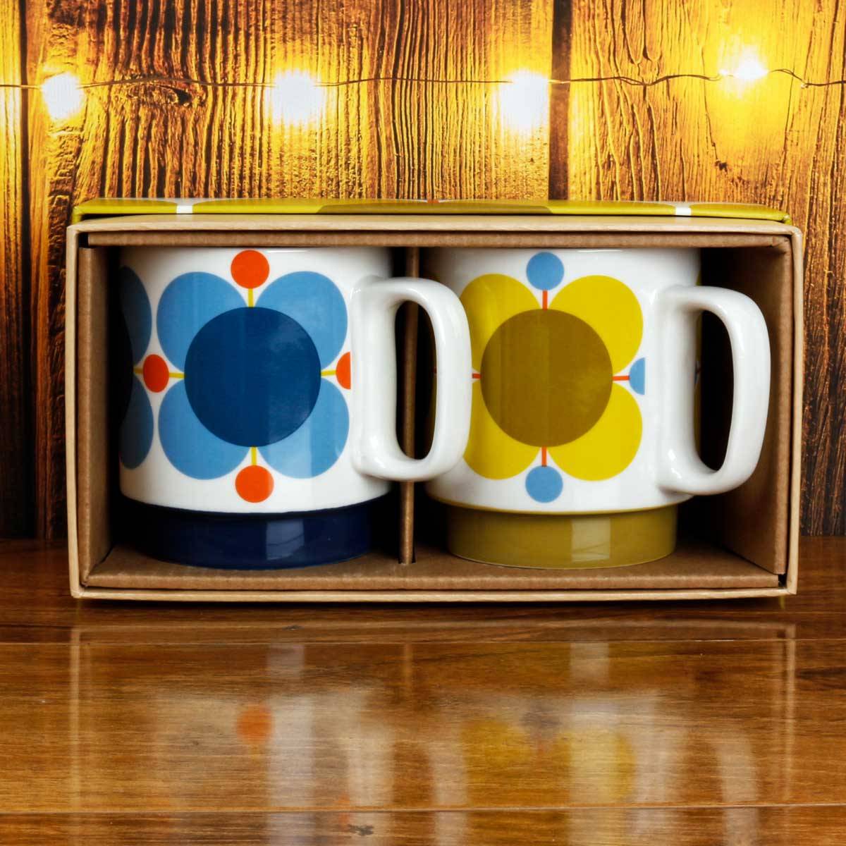 • Orla Kiely Atomic Flower Sky/Sunflower Set of 2 Mugs
