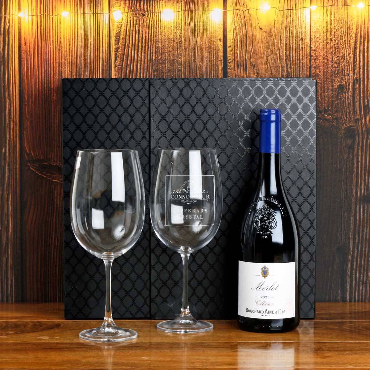 • Tipperary Crystal Set of 2 Red Wine Glasses with Wine in Gift Box