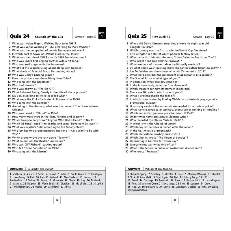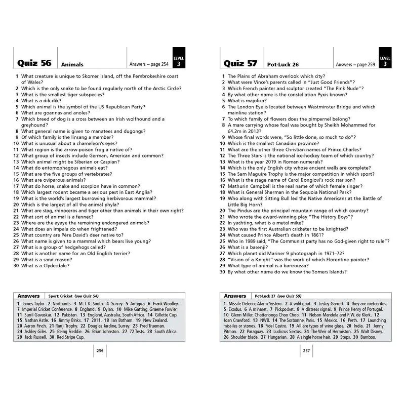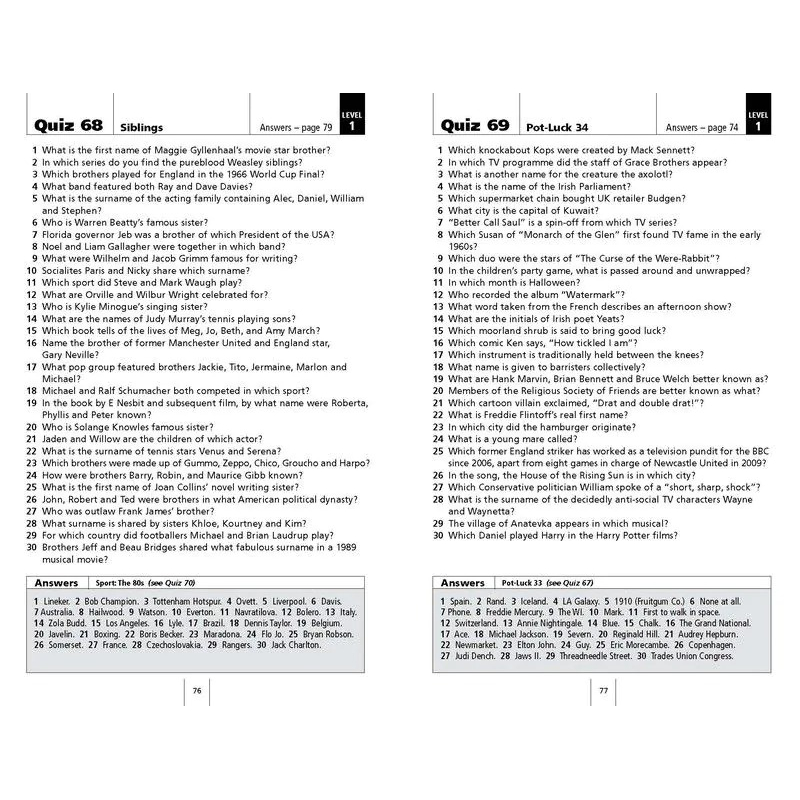10,000 questions, and over 300 individual quizzes make up this superb book, containing a wealth of fascinating information on a huge variety of subjects perfect for quiz aficionados, divided by difficulty level and subject matter.
