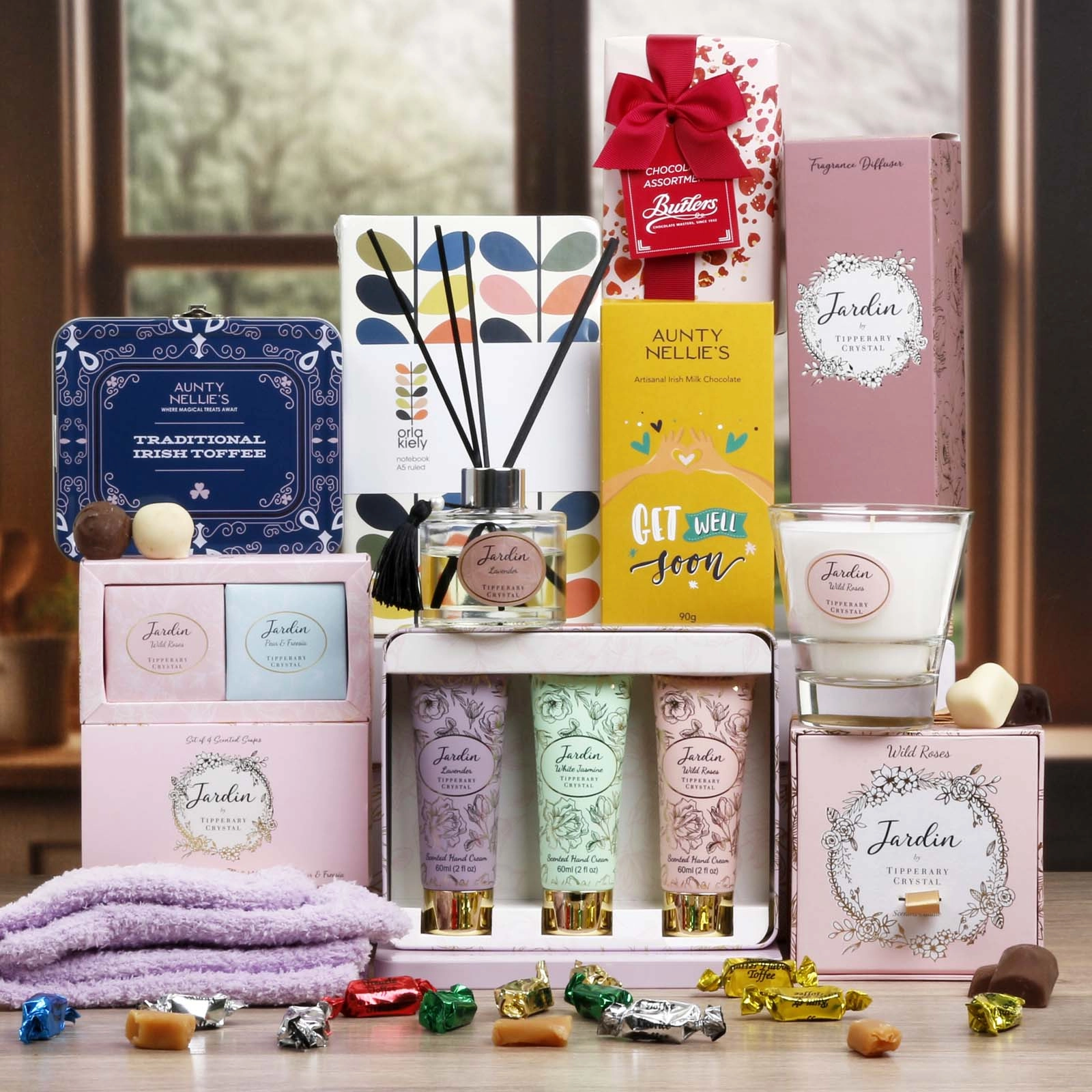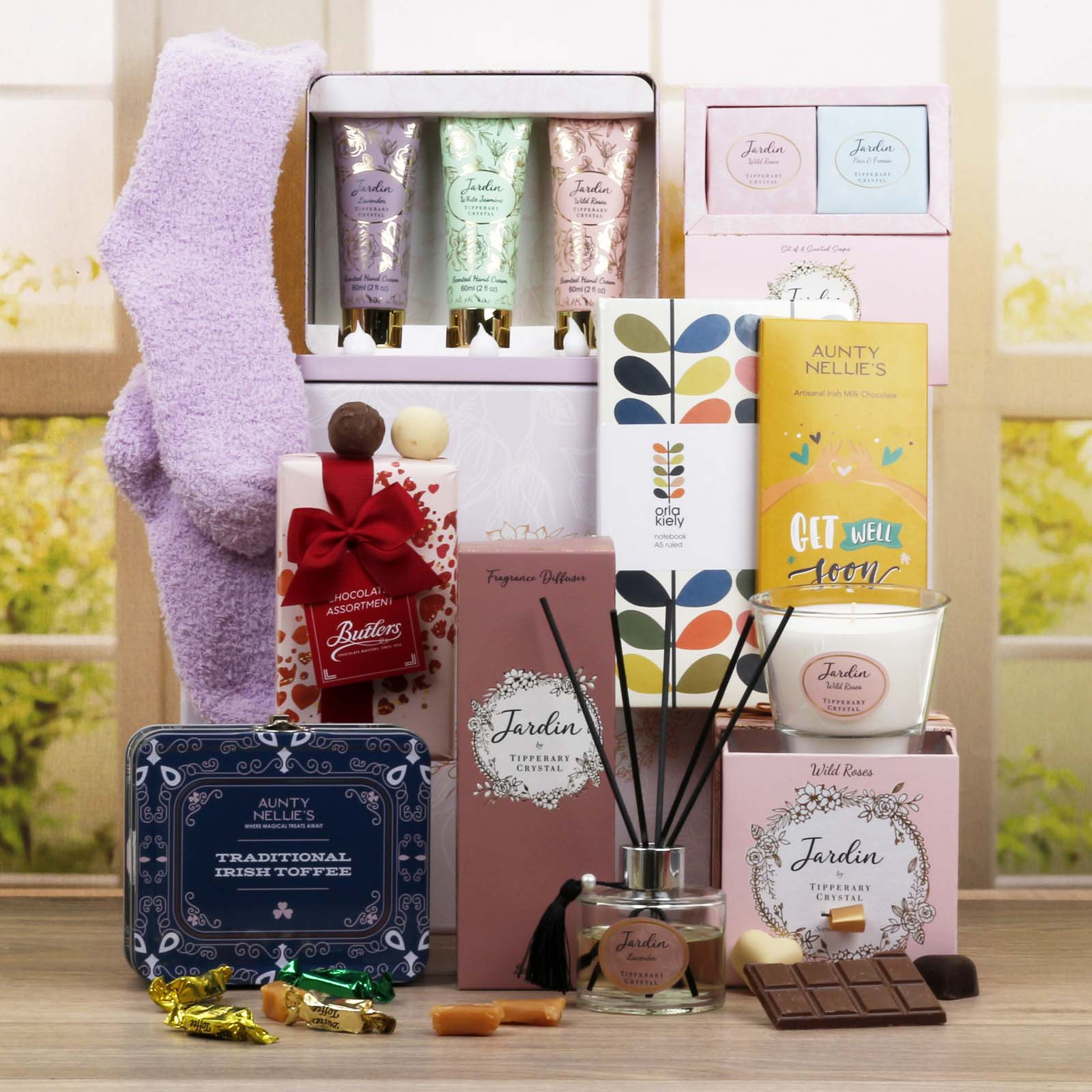 A wellbeing gift box filled with pampering treats - and a bit of chocolate too!
