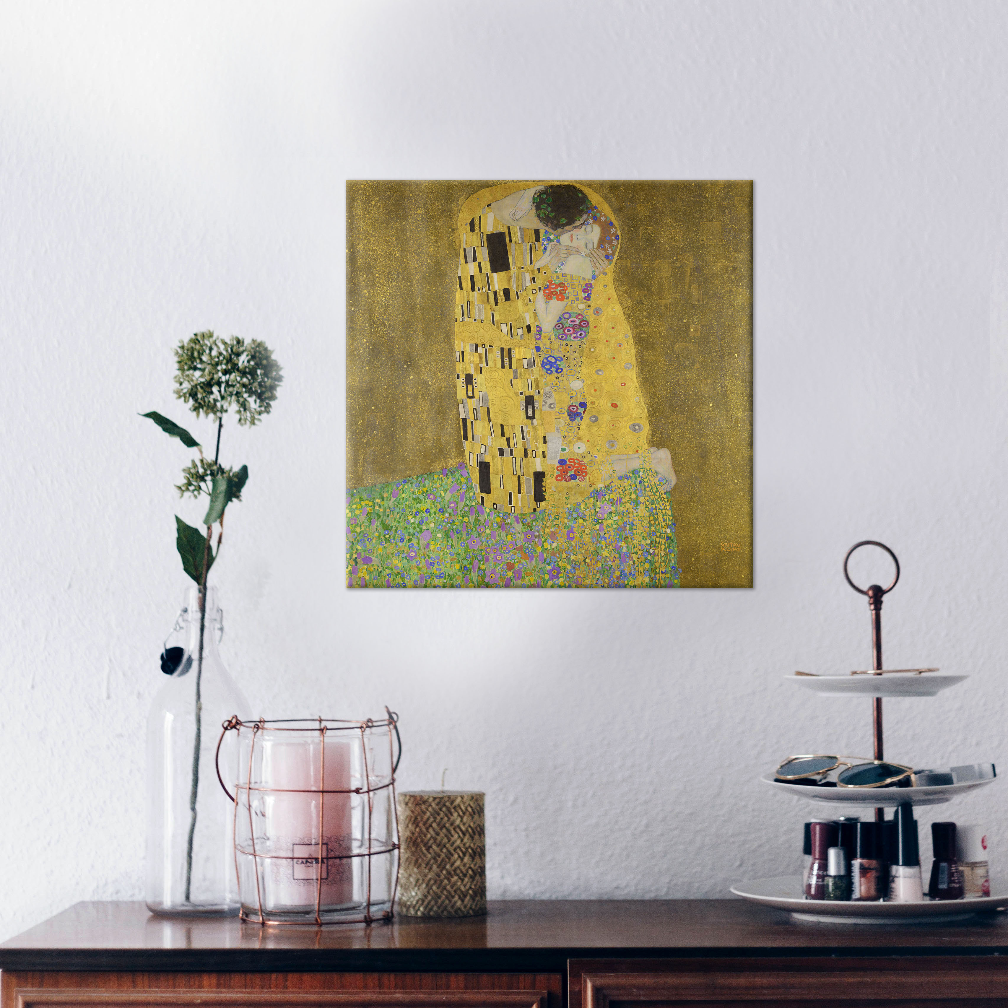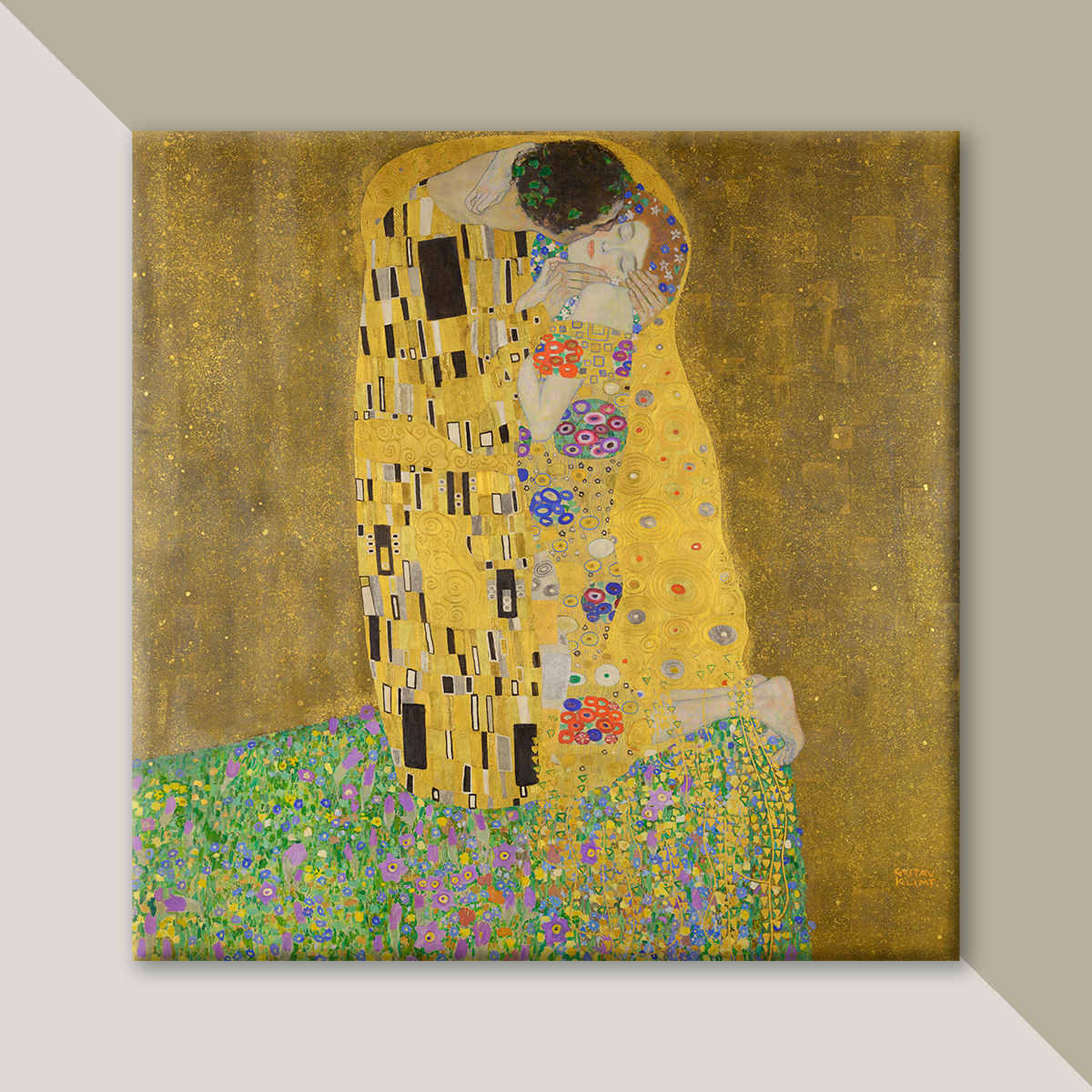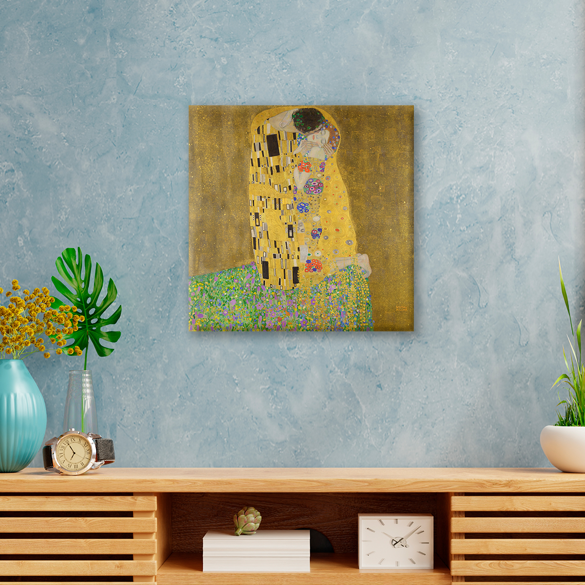 Our beautiful The Kiss by Gustav Klimt stretched canvas makes fantastic gifts for all occasions. They are printed on a high-quality, vibrant canvas that produces brilliant results. Whether placed in a living room, a bedroom, or a nursery these long-lasting prints will be treasured for years to come. It is mounted onto a box frame. It is ready to hang straight from the box.