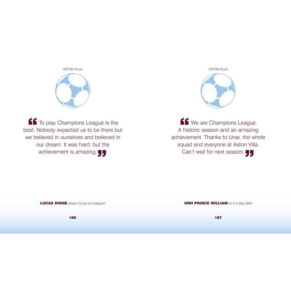 Despite its overall prosperity, Villa has experienced ups and downs, including relegation from the Premier League in 2016. However, after three seasons in the EFL Championship and two ownership changes, the club returned to the Premier League in 2019, and in 2024, qualified for the UEFA Champions League for the first time since 1982. From Pongo Waring, 'Big Ron' Atkinson and 'Deadly Doug' Ellis to Peter Withe, Gary Shaw, Gareth Southgate, Dwight Yoke and Jack Grealish, hear from the bold voices that have shaped Aston Villa over the years and re-live the highs and lows of this historic club.192 pages, Hardback.