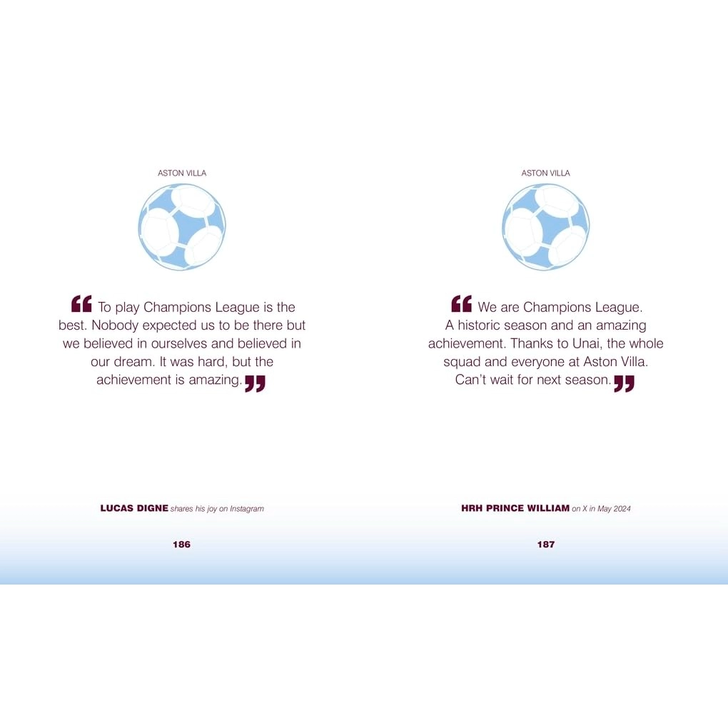 Despite its overall prosperity, Villa has experienced ups and downs, including relegation from the Premier League in 2016. However, after three seasons in the EFL Championship and two ownership changes, the club returned to the Premier League in 2019, and in 2024, qualified for the UEFA Champions League for the first time since 1982. From Pongo Waring, 'Big Ron' Atkinson and 'Deadly Doug' Ellis to Peter Withe, Gary Shaw, Gareth Southgate, Dwight Yoke and Jack Grealish, hear from the bold voices that have shaped Aston Villa over the years and re-live the highs and lows of this historic club.192 pages, Hardback.